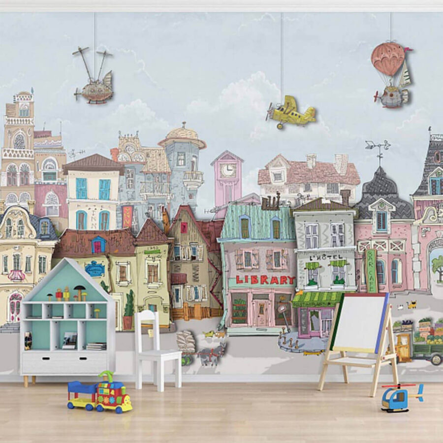 Képzelje el, hogy belép egy szobába, amely tele van élettel – egy helyre, ahol furcsa autók, bájos épületek és szeszélyes repülőgépek mosolyt csalnak az arcára. Ez a falikép olyan, mint egy életre kelt mesekönyv, amely játékos hangulattal és egy csipetnyi nosztalgiával tölti meg a teret. Képzeld el, ahogy kávét kortyolgatsz, miközben a vibráló utcákat nézed, ahol minden részlet beindítja a fantáziádat. Ez nem csak dekoráció; olyan, mintha minden nap egy mini kalandban vennél részt. Ez a tapéta tökéletes egy hangulatos sarokhoz vagy egy gyerekszobához, és garantáltan életre kelti a falakat. Ki ne szeretne egy darabot ebből a csodálatos városi tájból az otthonában?