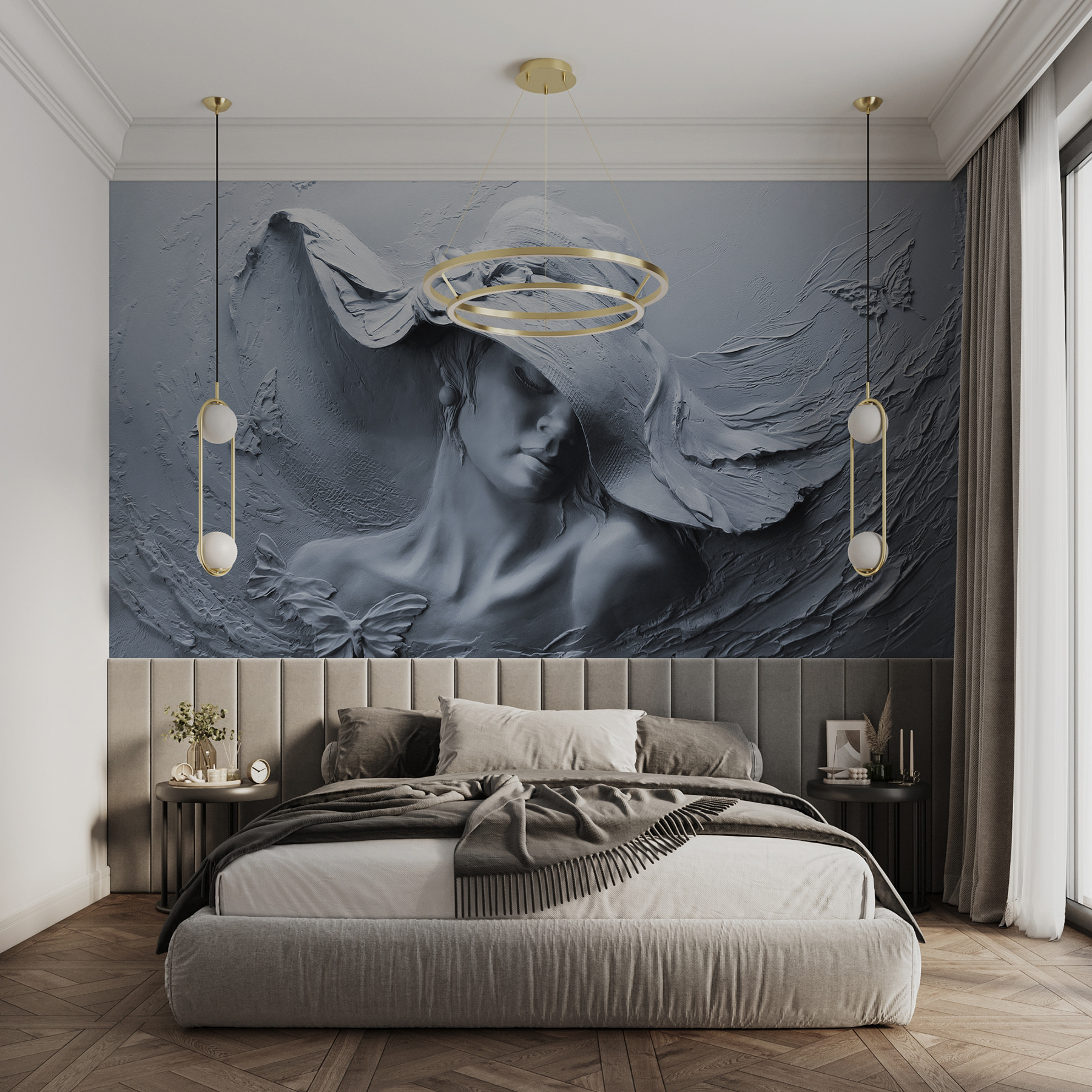 Alakítsa át terét ezzel a magával ragadó falfestménnyel, amely egy kalapos nő nyugodt szobrát ábrázolja. Olyan, mintha egy lágy szellőt hozna a szobádba – azonnal felemelő. Képzelje el, ahogy hátradől kedvenc könyvével, a körülötte kavargó finom pillangók szinte élőnek tűnnek. Ez a feltűnő darab nem csak vizuálisan érdekes; álmodozásra és történetekre késztet. Tökéletes a kreativitás táplálására, vagy akár csak mosolyt csal az arcodra, amikor elsétálsz mellette. Van egy üres fala? Ez a falfestmény olyan, mint egy meleg ölelés, hívogató és egy kicsit titokzatos. Tökéletes mindenkinek, aki szereti az egyedi dekorációt, amely a lélekhez szól.