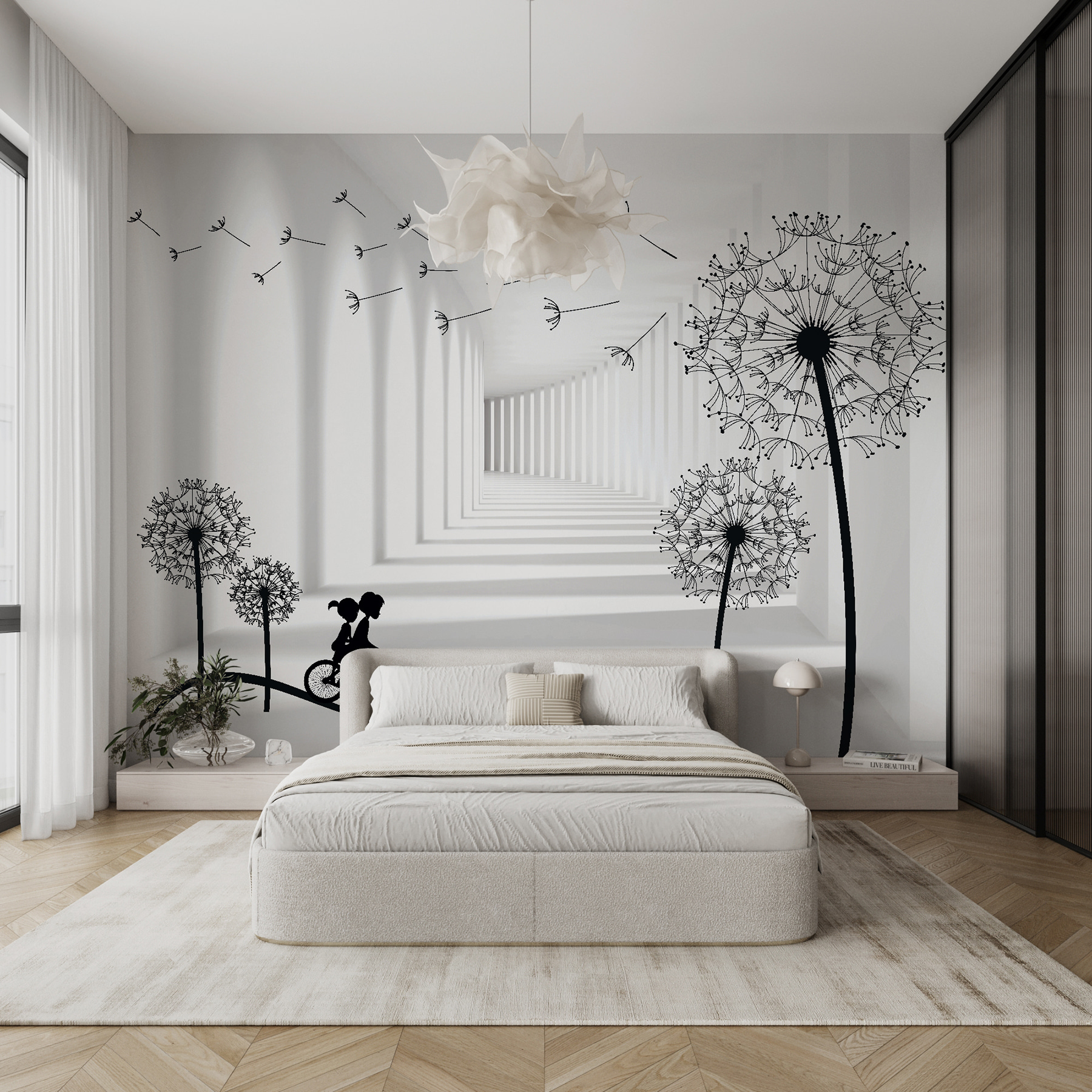 Alakítsa át terét ezzel a szeszélyes falfestménnyel, amelyen egy fiú és egy lány biciklizik egy álomszép pitypangos tájképen keresztül. A játékos sziluettek a szabadság és a kaland érzését idézik, és a gondtalan gyermekkori napok és a napsütötte kirándulások emlékét idézik fel. Képzelje el, hogy minden reggel kellemesen meglepődve ébred fel ezzel az örömteli jelenettel, amely bájos kisugárzást kölcsönöz falainak. Olyan, mintha egy szelet nosztalgiát hoznál az otthonodba. Tökéletes választás nappaliba, játszószobába vagy akár abba a kis olvasószobába – ez a falfestmény nem csupán dekoráció, hanem egy varázslatos utazás, amely csak arra vár, hogy megtörténjen!