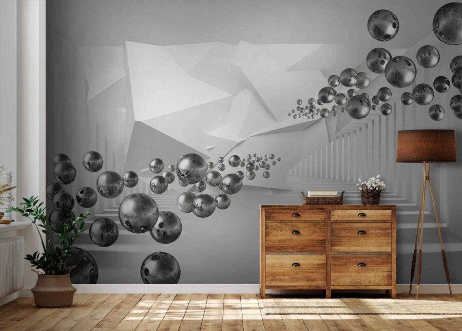 Lépjen be egy vizuális játszótérre a “Lebegő gömbök a geometrikus folyosón” című falfestménnyel, ahol a kreativitás kerül a középpontba. Képzelje el, hogy a szeszélyes gömbök és éles szögek álomszerű birodalmában sétál, a mélység és az intrika elbűvölő táncát létrehozva. Olyan, mintha egy labirintusban lennél, ahol minden forduló új meglepetést tartogat. Az elegáns, modern hangulat tökéletes bármilyen térbe, inspirációt ad, legyen szó akár egy hangulatos otthoni irodáról vagy egy élénk nappaliról. A barátok kíváncsian fognak odakukkantani, és megkérdezni, milyen varázslatok történnek a falakon. Ez nem csak dekoráció; ez egy élmény!