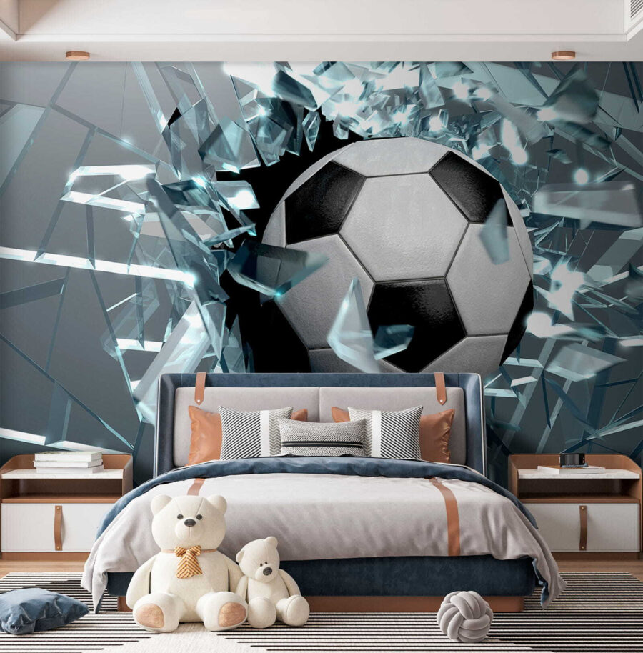 Ez a falfestmény egy szobát vibráló kalanddá változtatva a foci izgalmas energiáját hozza a falra. Képzelj el egy erős focilabdát, amint átszakít egy képzeletbeli akadályt, az üvegszilánkok pedig élénk hangulatot keltenek. Olyan, mintha a helyiséged épp most szerezte volna meg a végső gólt, így tökéletes választás azoknak a gyerekeknek, akik arról álmodoznak, hogy szupersztárok lesznek a pályán. Csak képzeld el – a barátok átjönnek, a szemek tágra nyílnak, és a kérdések csak úgy röpködnek. Melyik gyerek ne érezné magát bajnoknak ezzel a dinamikus jelenettel? Ez több mint dekoráció; inspiráció, izgalom és rengeteg szórakozás!
