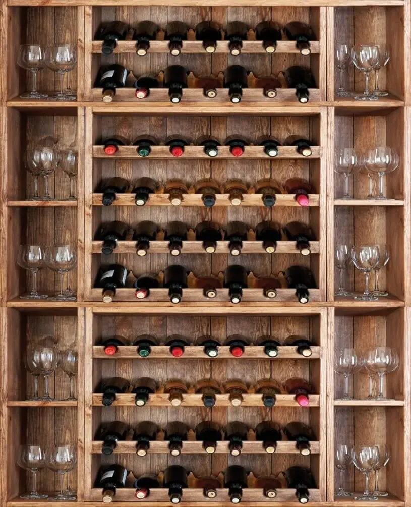 Fotótapéta Borosüvegek és poharak a polcokon. (Cikkszám: u65213)