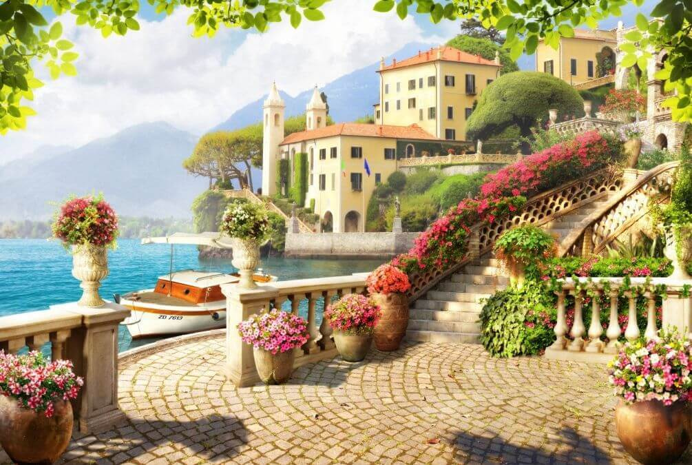 A színek szuper élénkek – az élénk rózsaszín a víz lágy kékjével szemben. Olyan, mintha kitörne az öröm. Képzeld el magad, kávéval a kezedben, ahogy elmerülsz a nyugalomban. Talán még egy jó könyvvel is. Ez a falfestmény jól illeszkedik a modern dekoráció hangulatához, de ugyanakkor időtlen, klasszikus vonásokkal is rendelkezik. Olyan érzés, mint egy azonnali frissítés, igaz? Ráadásul a kőútvonalak és a részletes építészet egy kis európai hangulatot kölcsönöz minden térnek. Vendégeid azt fogják hinni, hogy otthonodat egy butikhotellé alakítottad át. Ki ne szeretné ezt?