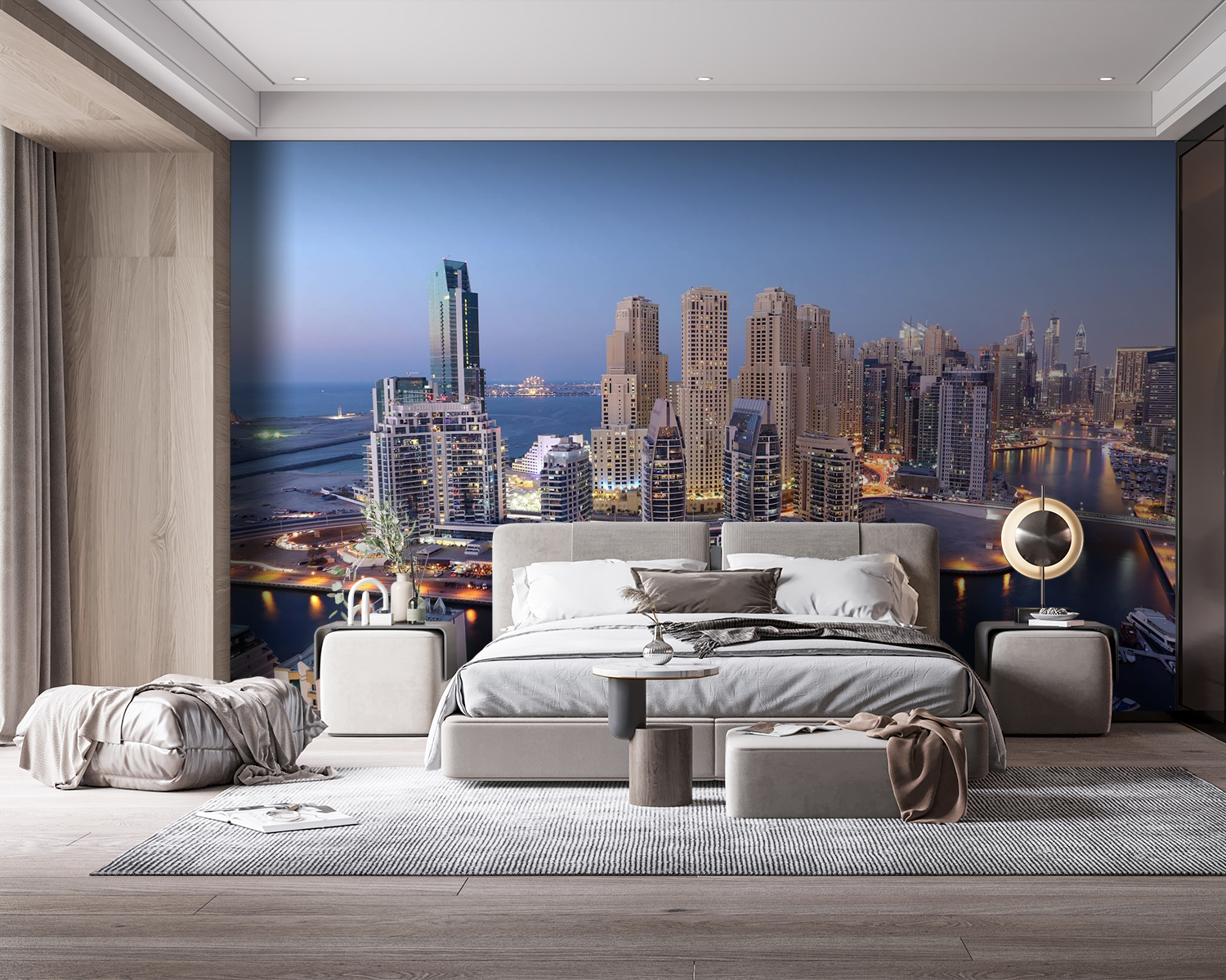 Ragadjon meg egy szeletet a városi varázslatból ezzel a magával ragadó falfestménnyel, amelynek címe “Egy épület nagy látószögű nézete”. Képzelje el, hogy belép a helyiségébe, és azonnal egy nyüzsgő városképbe kerül, ahol a karcsú felhőkarcolók találkoznak a nyugodt vízparttal. Tökéletes az építészet szerelmeseinek, vagy azoknak, akik egyszerűen csak az elegáns, modern esztétikát kedvelik. A fények lágyan pislákolnak, miközben a város alattunk pezseg az élettől – igen, ennyire hangulatos.