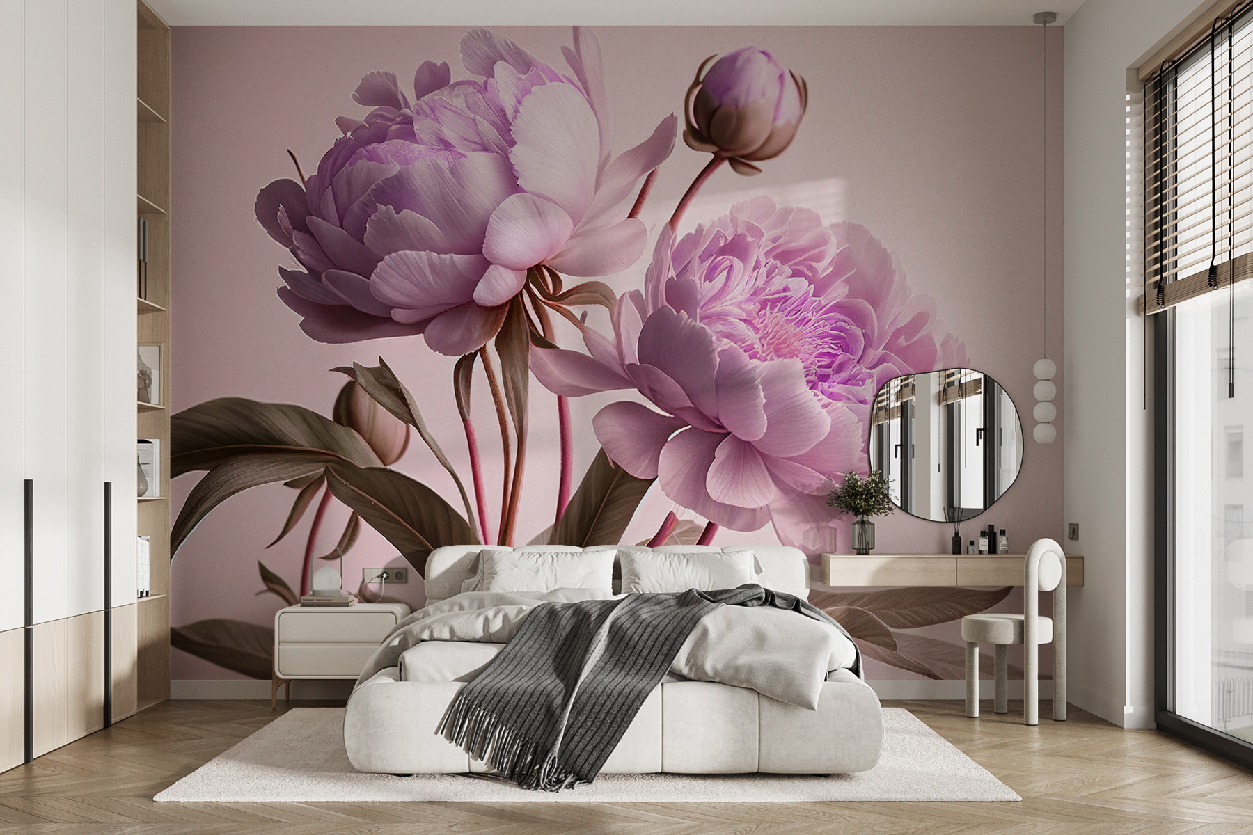 És ezek nem akármilyen virágok; ezek pünkösdi rózsák. A kert királynőjeként ismertek, a romantikát és a jólétet szimbolizálják. Tehát nem csak egy szép arc – van jelentése is. Legyen szó egy hangulatos nappaliról, egy békés hálószobáról vagy akár egy elegáns irodahelyiségről, ez a falfestmény egy csipetnyi kifinomultságot kölcsönöz a megfelelő mennyiségű szeszélyességgel.