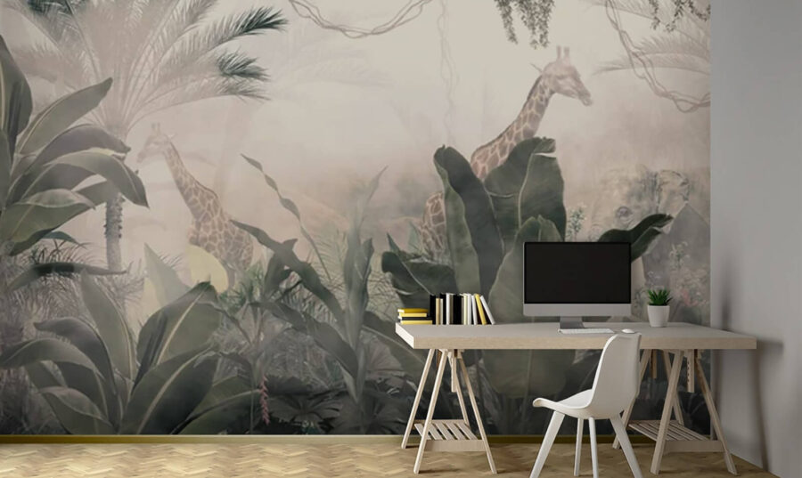 Varázsolja át otthonát egy mesés dzsungellé ezzel a faliképpel, amelyen kecses zsiráfok bújnak elő a buja növényzet közül. Mintha egy álomba lépne, ahol a természet uralkodik. Képzelje el: reggel kávét iszik, a napfény beszűrődik, és egy nyugodt zsiráf lazán rágcsálja a leveleket a falán. Kinek kell szafari, igaz? A lombozat rétegei mélységérzetet keltenek, így a kis szobák tágasabbnak tűnnek. Ez egy jó beszélgetésindító téma – a vendégek biztosan megállnak és megcsodálják. Tökéletes kalandvágyó lelkeknek vagy bárkinek, aki menekülni szeretne a mindennapokból. Egy kis varázslat, otthonában!