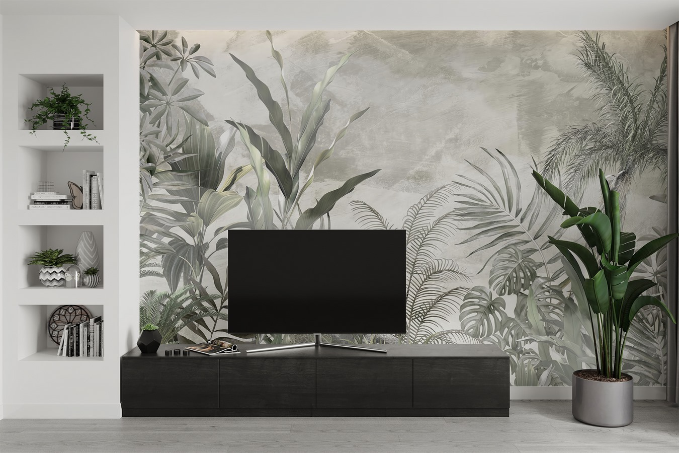 Fotótapéta Trópusi levelek ködös kertben. (Cikkszám: u71260)