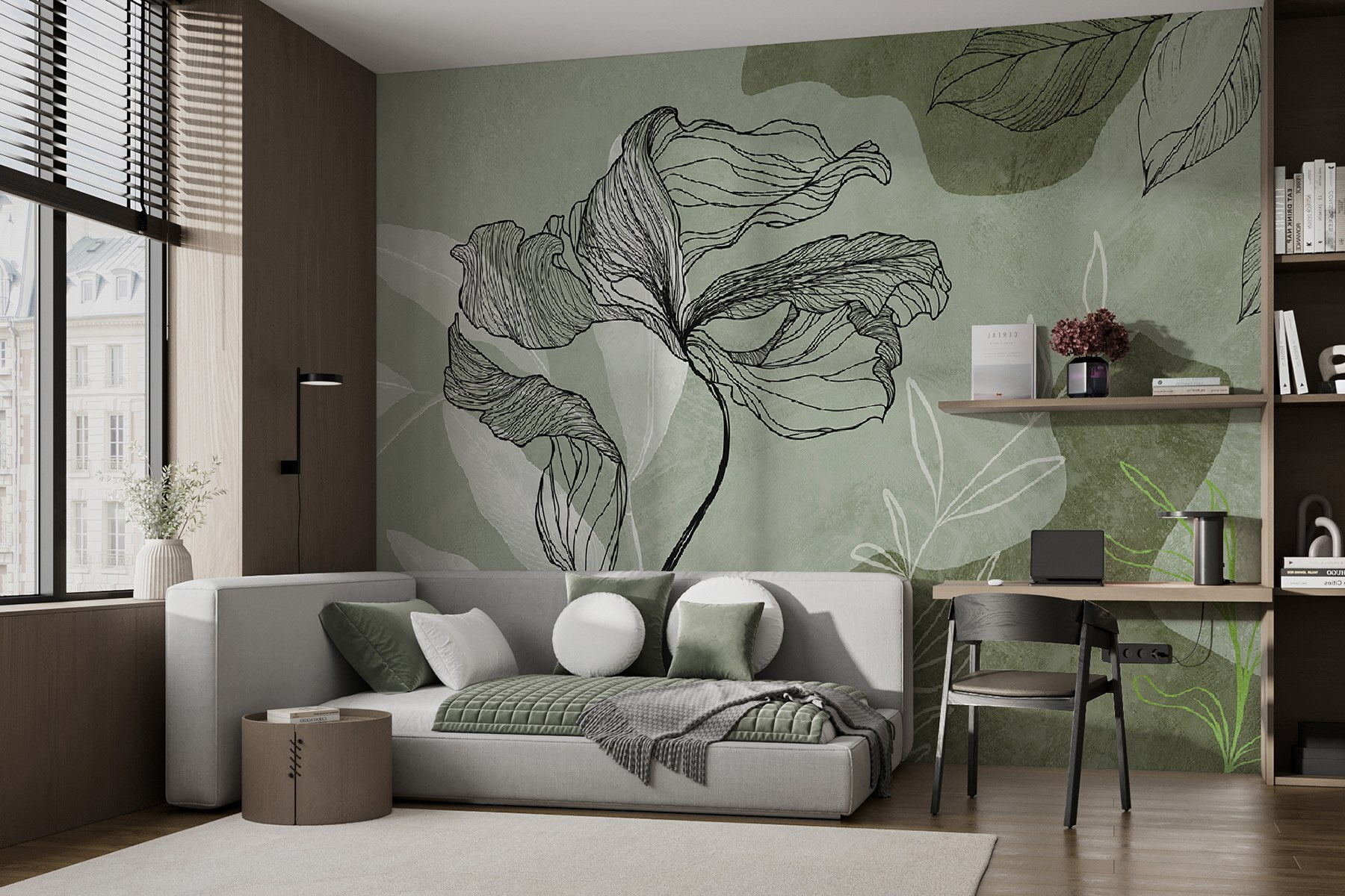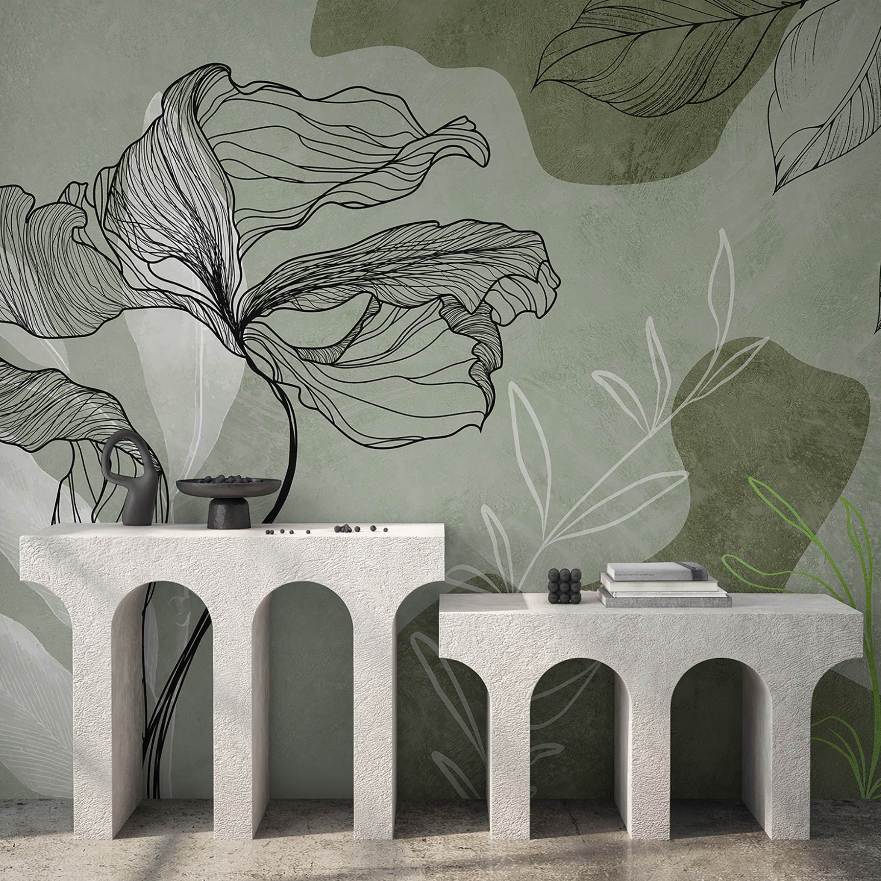 Képzelje el, hogy belép egy szobába, és a falon átívelő elegáns virágtánc fogadja. Ez a falfestmény, melynek találó neve “Egy virág rajzolása”, egy csipetnyi természeti bájt hoz a lakótérbe. Olyan, mintha állandóan tavaszodna – mínusz az allergia. A bonyolult vonalak és a nyugtató zöldek olyan érzést keltenek, mintha a virág csak úgy ringatózna a lágy szellőben. Tökéletes az álmodozónak, ez a műalkotás nyugalmat sugároz. Akár egy hangulatos zugban, akár egy szellős folyosón, a békés menekülésnek azt a kisugárzását adja, amire mindenki vágyik. Dobjon körbe néhány kényelmes párnát, és figyelje, hogyan változtat ez a falfestmény bármelyik hétköznapi szobát nyugodt menedékké.