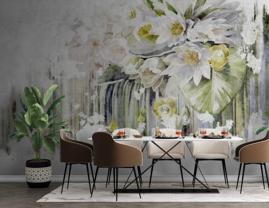 Brighten up any room with this stunning wall mural featuring lush flowers against a crisp white background. It’s like bringing a little garden indoors—minus the pesky pollen! Imagine relaxing in a cozy nook, surrounded by these beautifully painted blooms. Friends will walk in and say, “Wow, did you just step out of a botanical garden?” If only it came with the smell of fresh flowers too! It’s an enchanting touch that sparks joy, creates a focal point, and starts conversations. Perfect for a living room or a serene bedroom—talk about instant vibe upgrade!