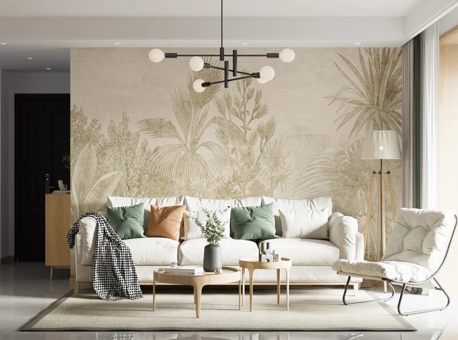 Transform any room into a serene escape with this stunning wall mural featuring elegant plant designs. Imagine stepping into a dreamy jungle right from your living room—it’s like a mini-vacation without the sunscreen! The soft, neutral tones create a calming ambience, perfect for unwinding after a long day. This mural brings nature indoors, adding a touch of warmth and a breath of fresh air. Picture a cozy reading nook surrounded by leafy greens, where every page feels a little more magical. Instant vibe boost? Oh, absolutely! Get ready to invite some peace and tranquility into your space.