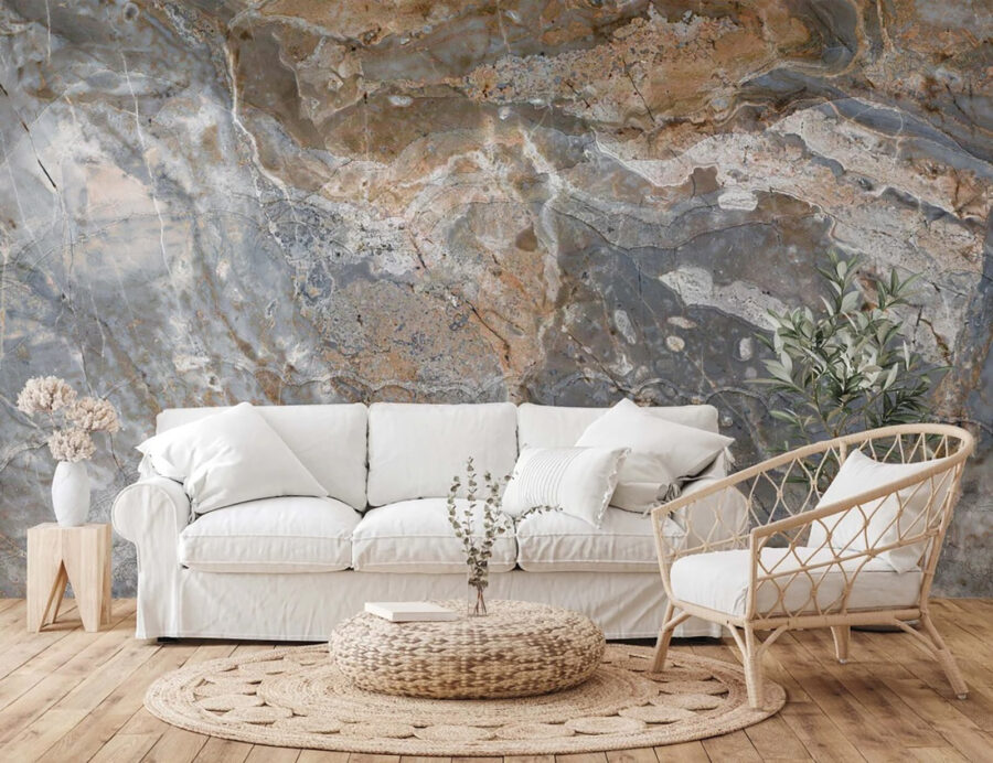 Alakítsa át a teret egy hangulatos menedékké ezzel a lenyűgöző falfestménnyel, amely meleg földszínekben kavargó márványtextúrát tartalmaz. Képzelje el, hogy egy olyan szobába lép be, ahol a falak inkább hasonlítanak egy békés tájra, mint egyszerű gipszkartonra. Olyan, mintha a természet szépsége tekeredne köréd, és pihenésre hívna.
