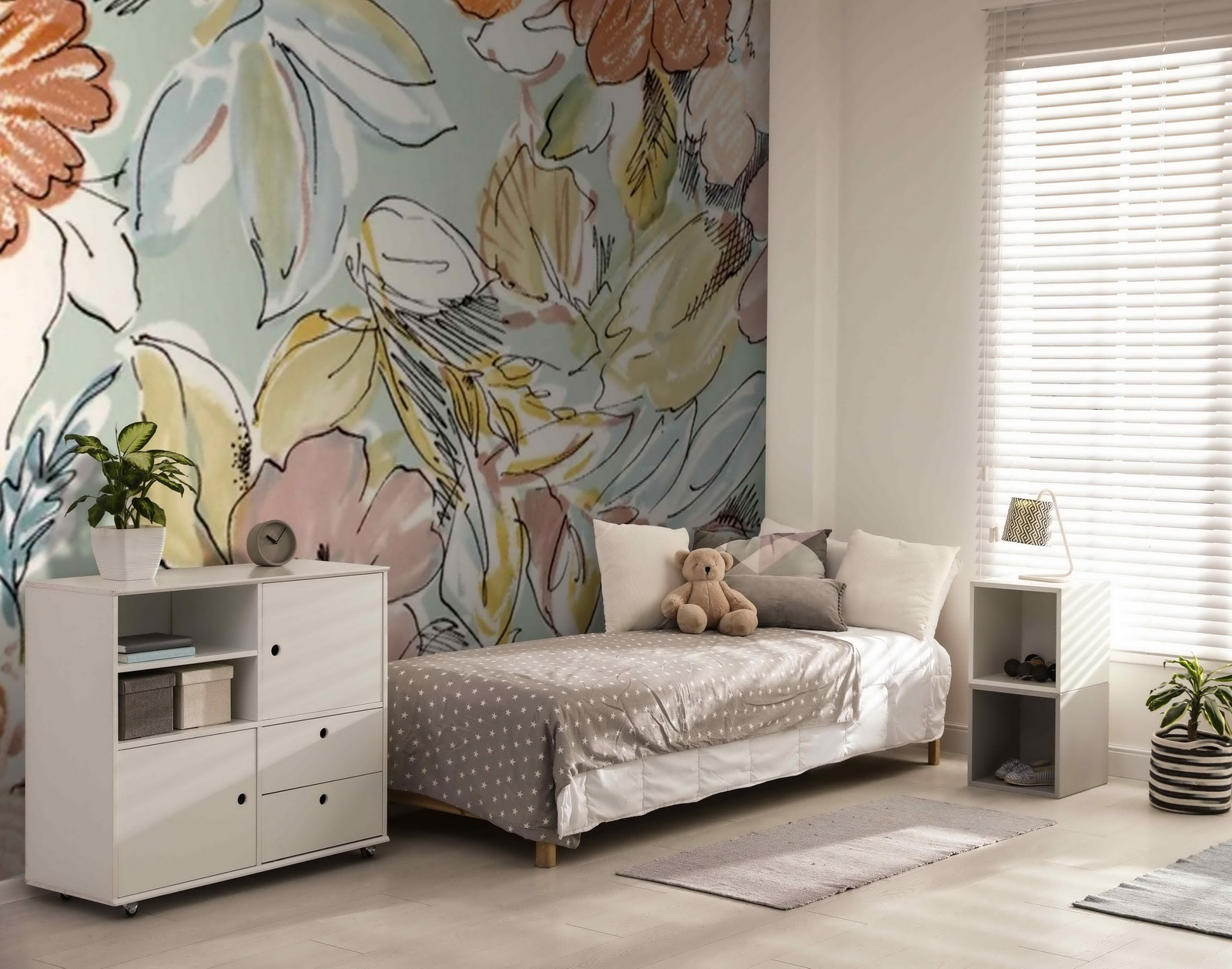 Képzelje el, hogy egy olyan szobába sétál, amely olyan, mint egy régi, álmodozós film nyugodt kertje – igen, ez a “Vintage Floral Pattern” falfestmény pontosan ezt tudja tenni a helyiségével. A pasztellszínű virágok szinte suttognak a múlt történeteiről, és úgy fogadnak, mint egy régi barát. A lágy színek szuper nyugtatóak, szinte olyanok, mint egy vizuális altatódal a szemednek. Tökéletes hálószobákba vagy lusta nappalikba – olyan helyekre, ahol egy jó könyvvel dőlsz hátra. És hé, ez nem csak szép, hanem beszélgetésindító is. “Ó, ez? Az én kis virágos oázisom!” Érted a lényeget.