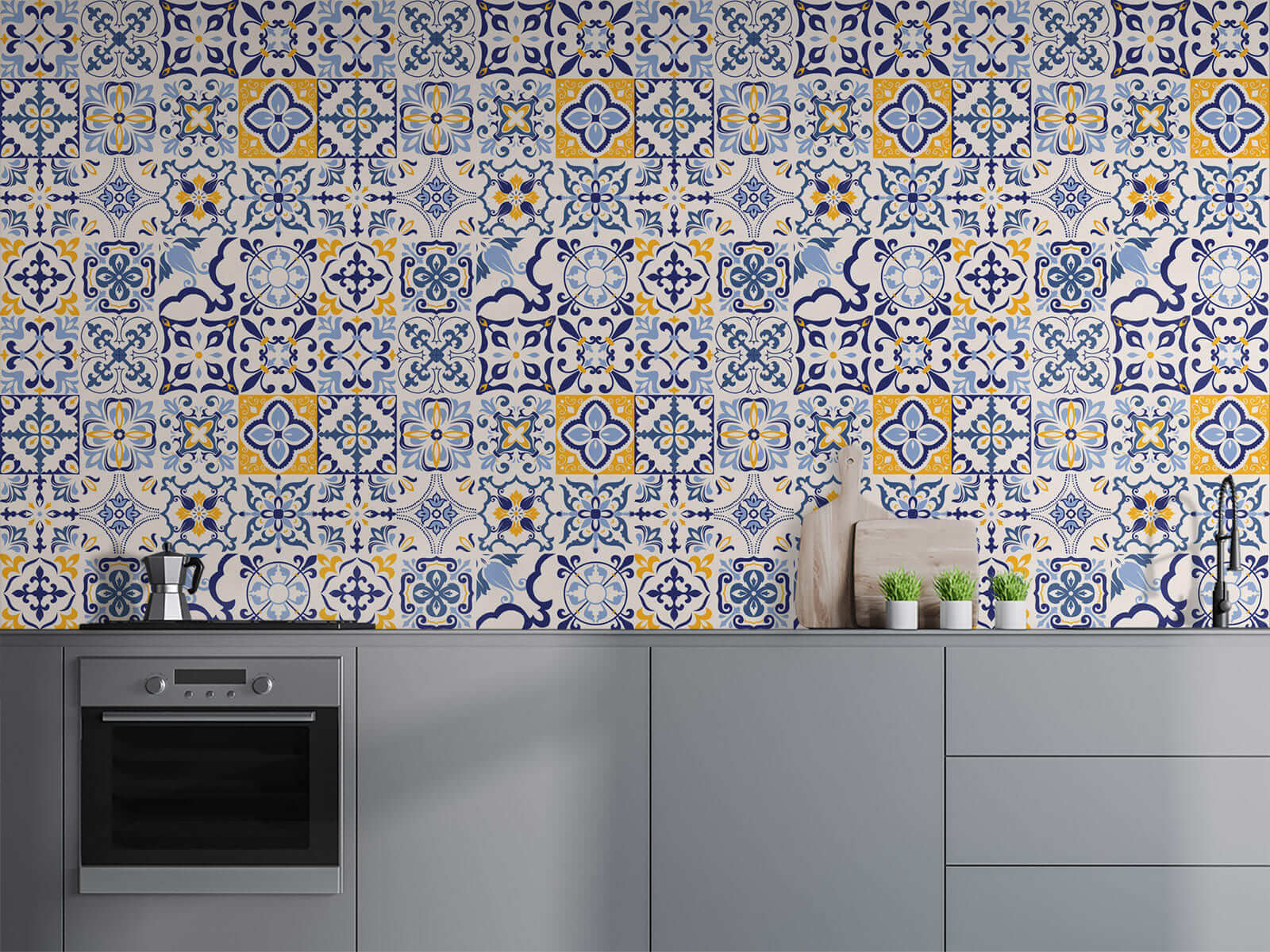 Változtassa meg otthonát ezzel az élénk faliképpel, amely lenyűgöző kék és sárga csempe mintával díszített. Mintha egy kis mediterrán varázslatot csempészne otthonába. Képzelje el, hogy visszatér egy hangulatos spanyol kávézóba, kávét kortyolgatva gyönyörködik a gyönyörű mintákban, amelyek körülveszik. A geometrikus formák táncolnak a falán, játékos hangulatot kölcsönözve, amely örömöt kelt minden alkalommal, amikor elhalad mellette. Tökéletes választás egy unalmas szoba felvidításához vagy egy élénk háttér megteremtéséhez a következő összejövetelhez. Képzelje el, ahogy barátai csodálják az ízlését, miközben Ön titokban élvezi a csodálatos dekorációs választásának dicsőségét. Miért ragaszkodna unalmas falakhoz, amikor lehet egy olyan műalkotása, amely élettel teli?