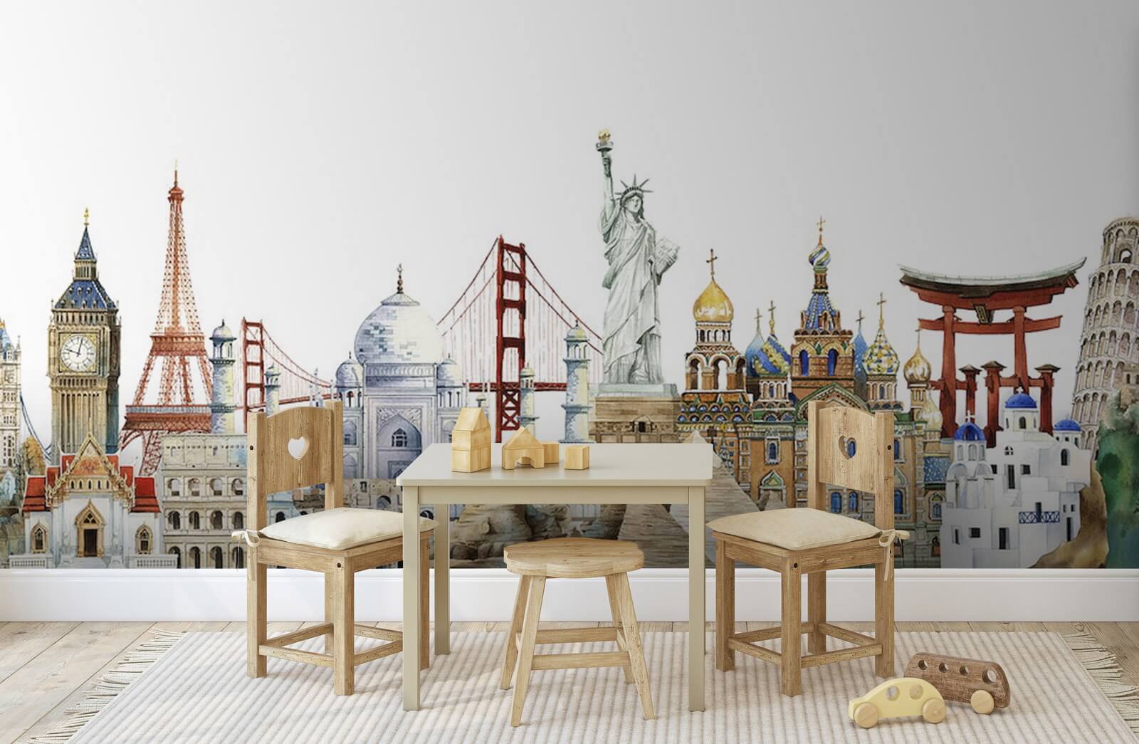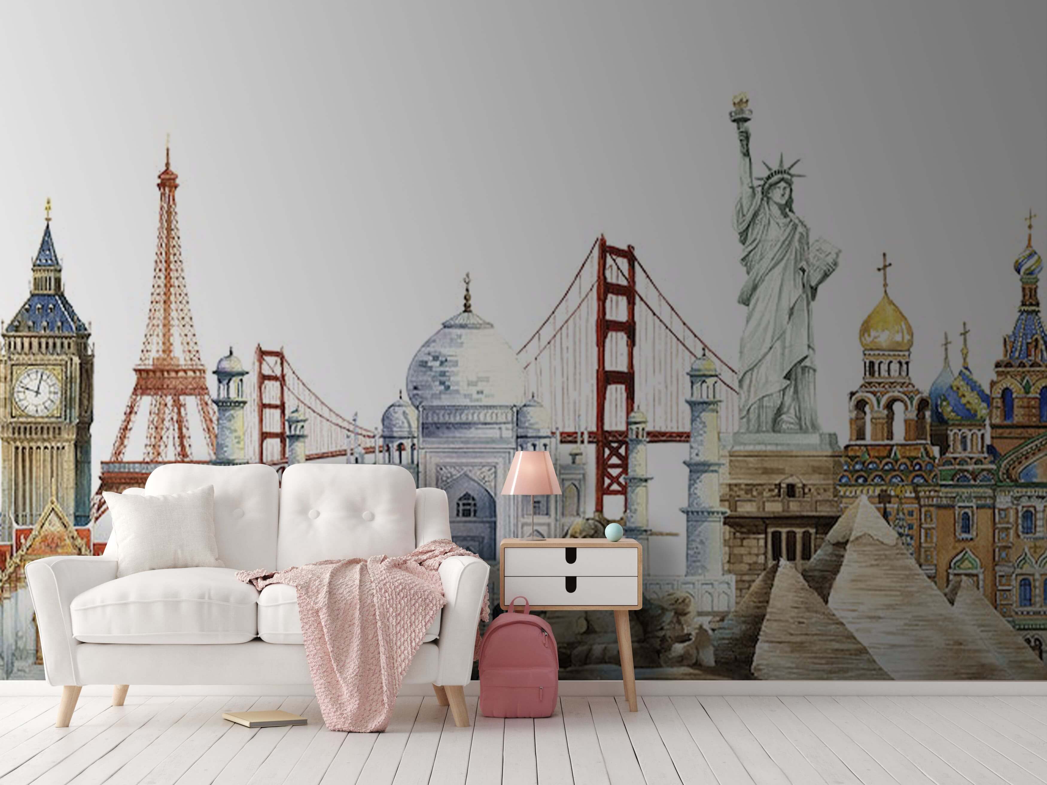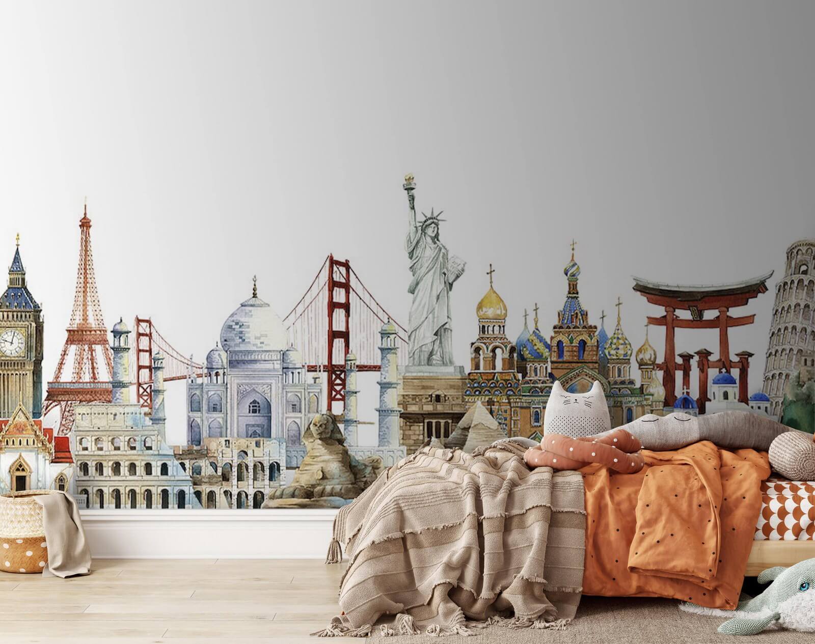 Alakítson át egy üres falat egy álomszerű üdülőhellyé ezzel a vibráló, ikonikus nevezetességeket ábrázoló akvarell falfestménnyel. Képzelje el, hogy kávét kortyolgatva az Eiffel-tornyot bámulja, vagy a Taj Mahalról álmodozik – ez a falfestmény minden látogatót arra invitál, hogy otthonról is felfedezze a világ csodáit. Minden egyes ecsetvonás az utazás szellemét ragadja meg, így a nappaliban egy kis kalandot érezhetsz. Ez a falfestmény nem csupán dekoráció; történeteket és meleg emlékeket ébreszt. Tökéletes a vándorútra vágyó lelkeknek, vagy bárkinek, aki csak szereti a jó vizuális lakomákat – olyan, mint egy nyílt meghívás a felfedezésre!
