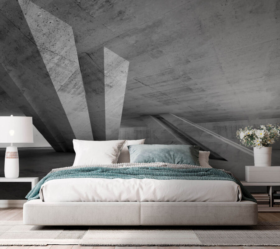 Alakítsd át otthonodat egy elegáns városi oázissá ezzel a lenyűgöző „Beton szoba oszlopokkal” falfestménnyel. Képzeld el, hogy a nappalidból egy elegáns, kortárs környezetbe léphetsz be. A merész geometriai formák és a sima textúrák modern eleganciát sugároznak, és bárki úgy érezheti magát, mintha egy exkluzív galériába lépett volna be.