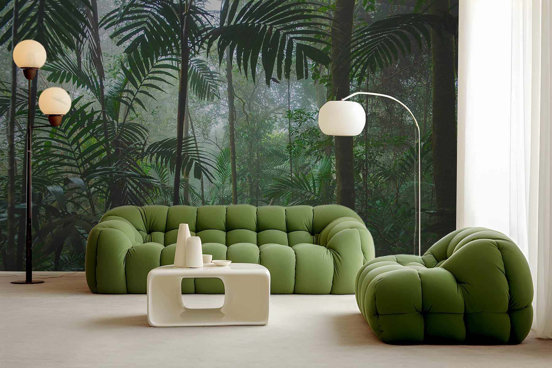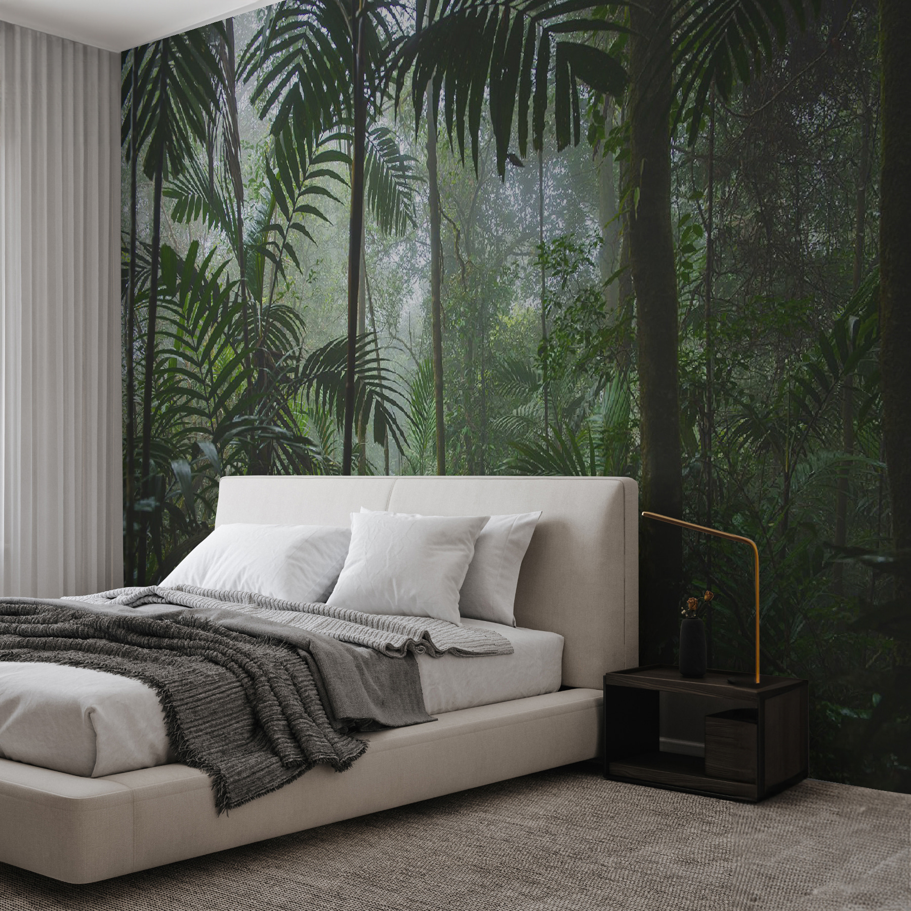 Képzelje el, hogy egy sűrű, ködös dzsungelbe lép – egyenesen a saját otthonába. Ezt hozza el ez a “Sűrű dzsungel ködös hangulatú” falfestmény az Ön terébe. Olyan, mintha egy ködös erdei pillanat varázslatos, időbe fagyott pillanata lenne a falán. Azok a mélyzöldek és a lágy, beburkoló köd arra invitálnak, hogy lazíts, talán még egy kis álmodozásra is inspirálnak a vadonban töltött kalandokról. Tökéletes bármely olyan helyiségbe, amelynek szüksége van egy kis természetességre vagy nyugtató hangulatra. Gyönyörűen passzol a fabútorokhoz, nem gondolod? Egy kis menekülés a mindennapi nyüzsgés elől anélkül, hogy kilépne a szabadba.