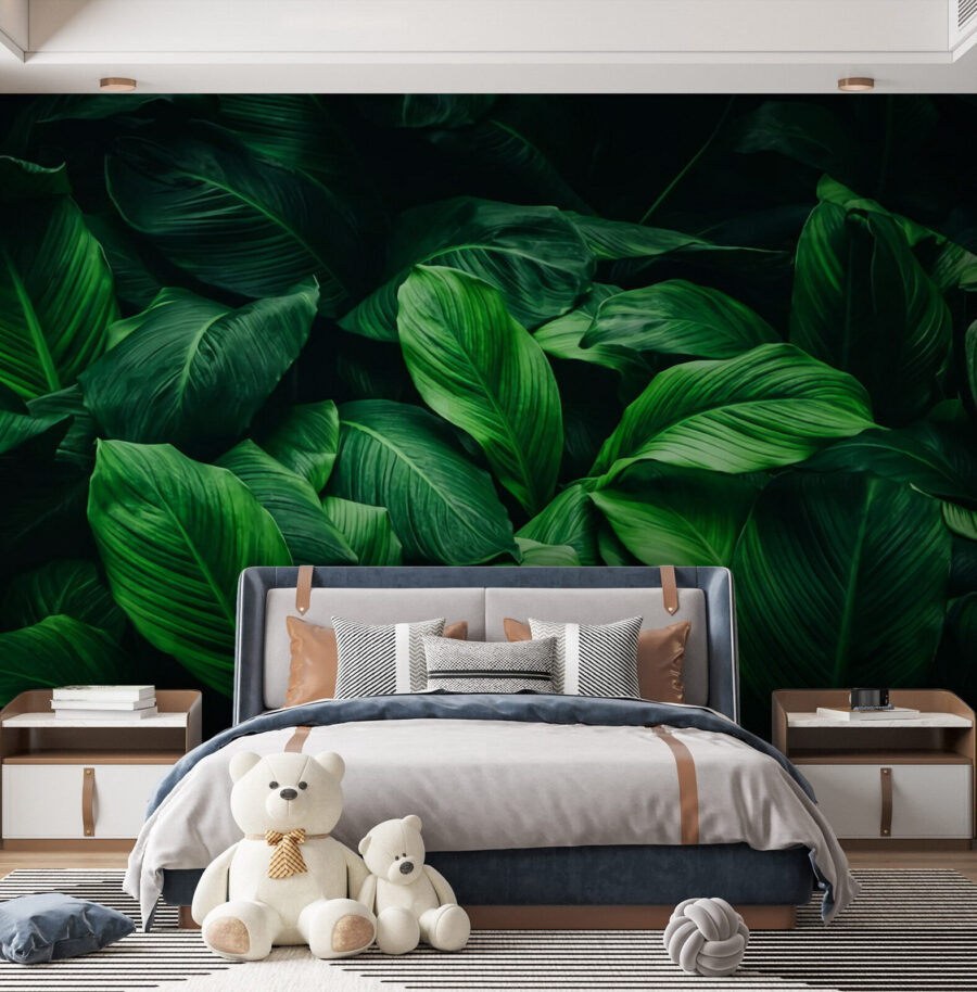 Képzelje el, hogy belép a szobájába, és elveszik a buja, zöld levelek tengerében. A “Fotótapéta Lush Green Leaves in Harmony” nem csak egy műalkotás – egy mini menekülés a természet karjaiba. Tökéletes mindenkinek, aki szereti a természetet behozni, ez a falfestmény egyszerűen nyugalmat és frissességet sugároz. A dús zöldek és a részletgazdag lombozat szinte hallja a levelek zizegését. Lehet, hogy soha többé nem akarod elhagyni a szobádat. Csodákat művel egy nappaliban vagy akár egy hangulatos olvasósarokban, így minden pillanatot egy kis visszavonulásnak érezhetsz. Olyan érzés, mintha a saját oázisod lenne, ott a faladon!