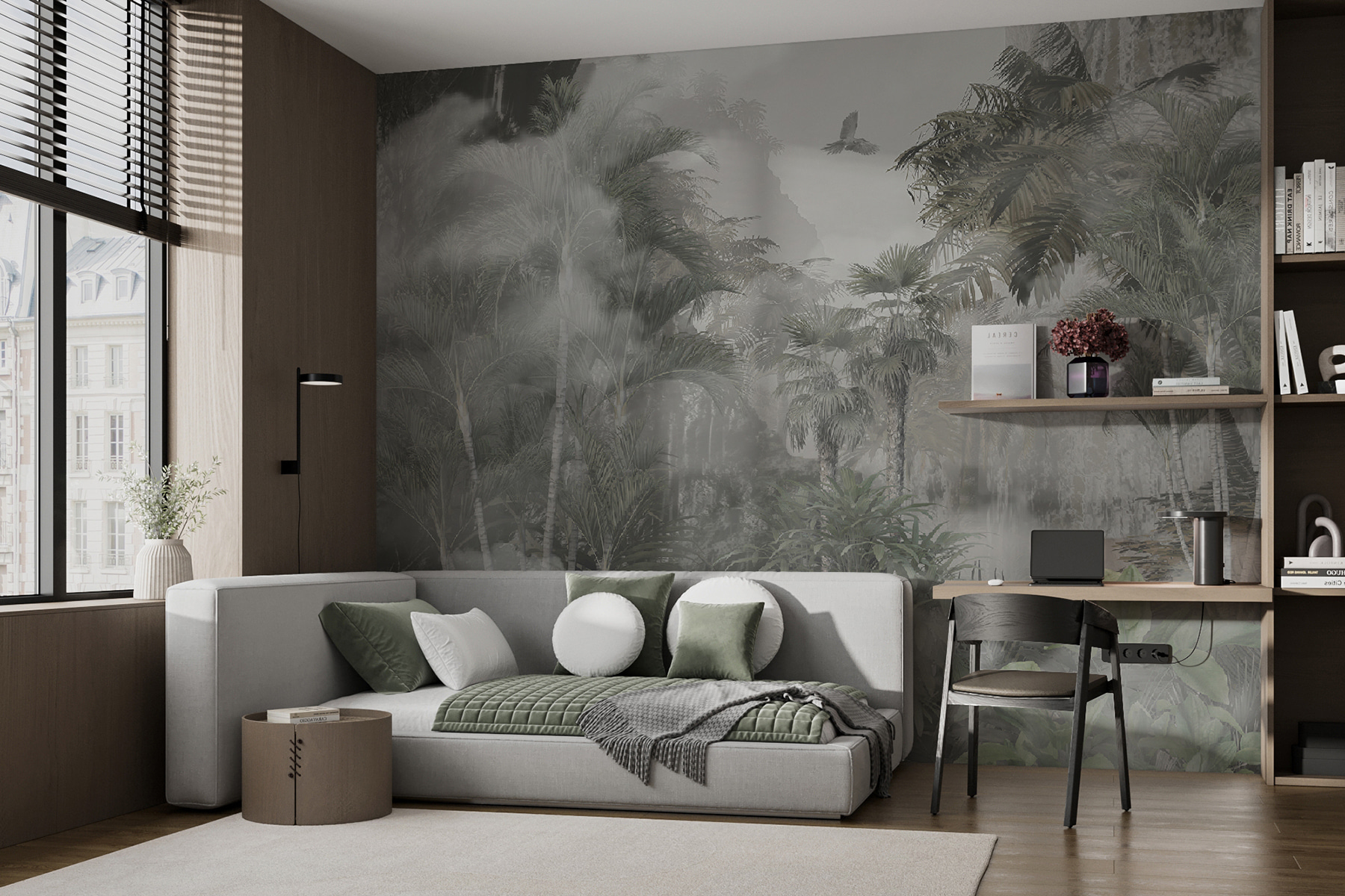 Ez a falfestmény tökéletes a nappaliba, hálószobába vagy akár egy hangulatos olvasósarokba, és nyugodt, szinte békés energiát kölcsönöz bármely helyiségnek. A vendégek talán kétszer is megnézik, és azon tűnődnek, hogy vajon egy egzotikus menedékhelyre tévedtek-e. És őszintén szólva, nehéz nem elveszni a részletekben, és minden alkalommal, amikor ránézel, új leveleket vagy a fény finom változásait veszed észre.