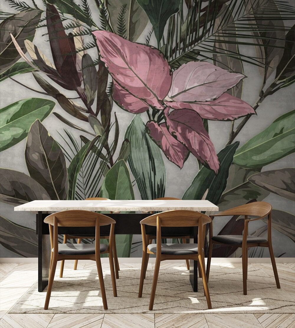 Imagine walking into a room where the walls whisper tales of nature—this vibrant botanical mural does just that! It’s bursting with lush greens and soft pinks, a perfect escape from the daily grind. Picture cozy evenings, wrapped in a blanket, sipping tea, while this botanical beauty wraps you in warmth. Your space can feel like an enchanting garden, minus the pesky bugs. It’s like bringing the outside in, but without having to remember to water anything. Plus, who doesn’t love a little nature therapy? Your walls deserve a little glow-up, don’t they?