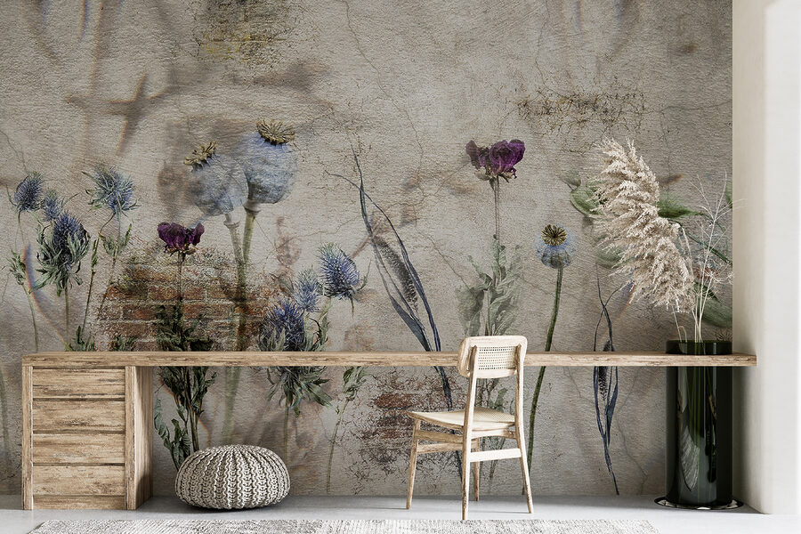 Alakítson át bármilyen teret ezzel a lenyűgöző falfestménnyel, amely egy botanikai kollázst ábrázol egy gyönyörűen rétegzett háttéren. Képzelje el, hogy egy olyan szobába lép be, ahol a finom virágok lágyan táncolnak a vintage báj suttogása mellett. A fakó színek nyugalmat idéznek, meghívva Önt egy kis szünetre és mély lélegzetvételre. Olyan, mintha egy kis kertet hoznál be a házba, minden öntözés nélkül. Ez a falfestmény tökéletes egy hangulatos zugba vagy egy csupasz falra, amely személyiségért könyörög, és mélységet és melegséget kölcsönöz. Nem csak dekoráció; hangulatot, hangulatot, finom emlékeztetőt ad, hogy lassítson és értékelje a természet művészetét.