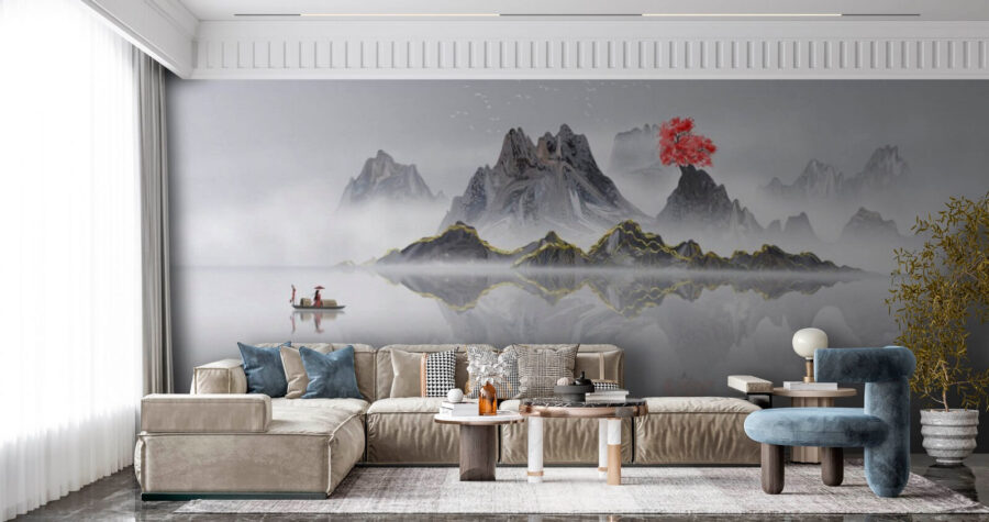 Változtassa meg bármelyik szobát ezzel a lenyűgöző faliképpel, amelyen egy fenséges hegylánc és egy feltűnő vörös fa látható, nyugodt vízzel a háttérben. Mintha egy békés menedék lenne otthonában. Képzelje el, ahogy egy csésze tea mellett kényelembe helyezi magát, és hagyja, hogy a nyugodt táj elvarázsolja.