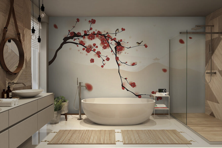 Képzelje el a következőt: belép egy szobába, és az első dolog, amit lát, ez a lenyűgöző falfestmény, vörös virágokkal egy nyugodt, távoli táj előtt. Olyan érzés, mintha egy álomszerű, nyugodt helyre kerültél volna, igaz? A gazdag piros virágok egyszerűen kiemelkednek, a lágy, ködös háttér pedig olyan nyugalmat áraszt, amit nehéz leírni. Olyan, mintha egy békés menedéket találnál a saját otthonodban.