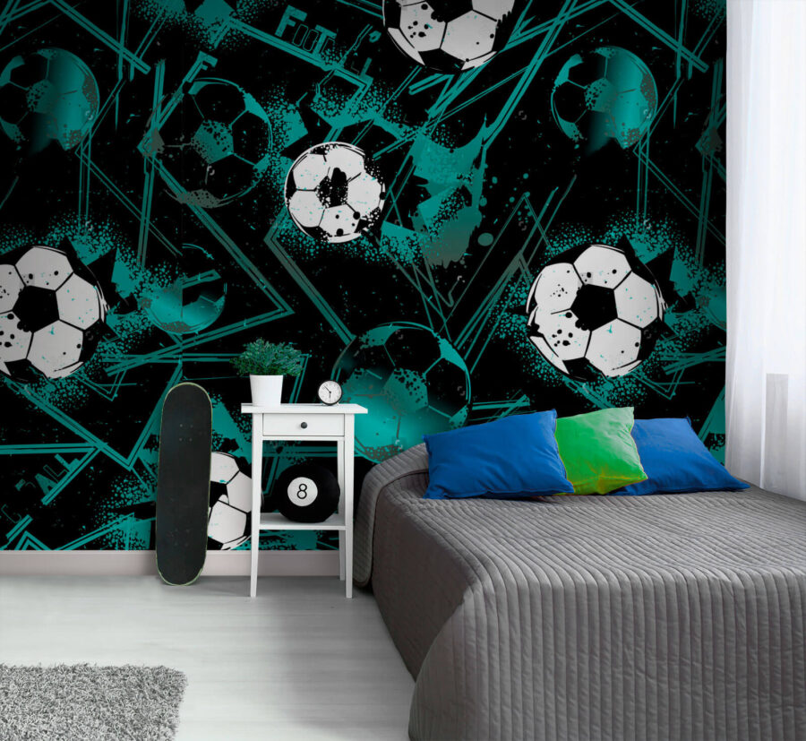 A mélyfekete színek és a türkizkék élénk színű, vibráló színfoltok olyan merész hátteret teremtenek, amelyet lehetetlen figyelmen kívül hagyni. Legyen szó akár a gyerekek játszószobájáról vagy egy trendi nappaliról, ez a falfestmény a hétköznapokat valami igazán izgalmassá varázsolja. Tökéletes a baráti beszélgetések szikrázására, vagy azokra a pillanatokra, amikor csak álmodozni akarsz a következő nagy meccsről. Miért is várna? Hozd be a mókát, és hagyd, hogy a jó idők jöjjenek!