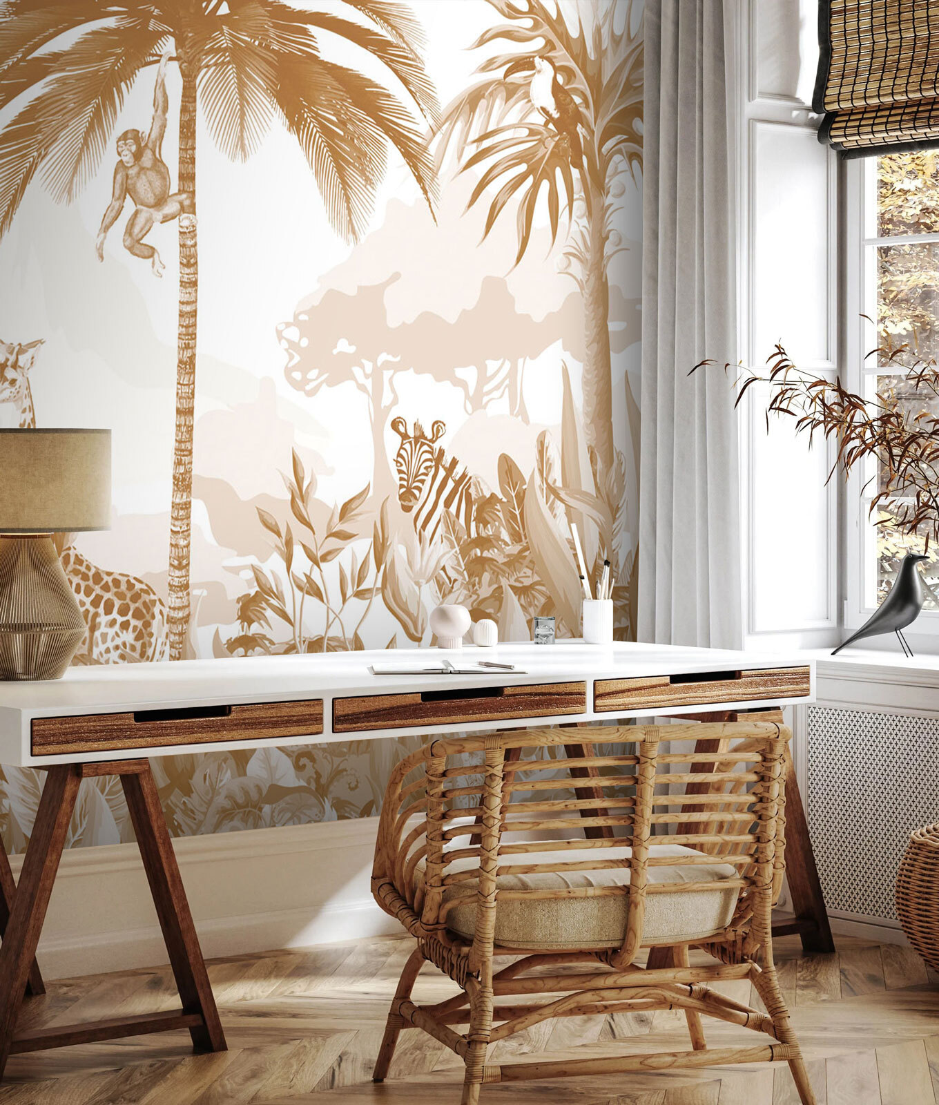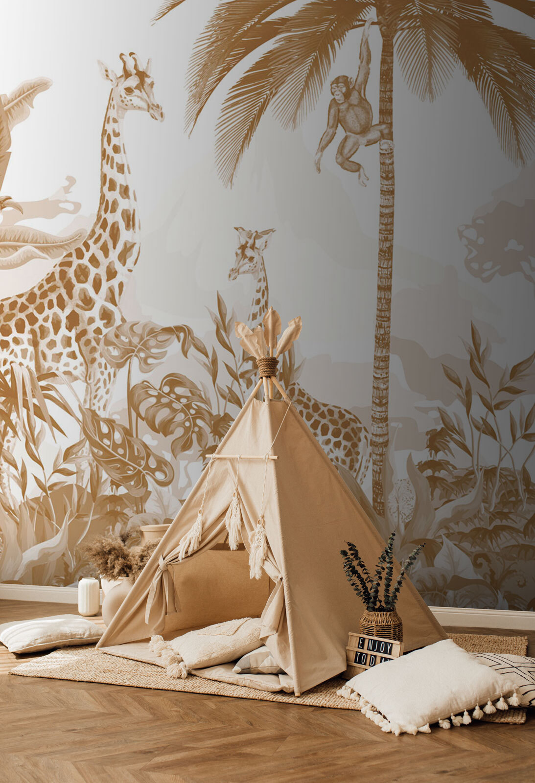 Képzeld el, hogy minden alkalommal, amikor belépsz egy szobába, egy egzotikus dzsungel kalandba csöppensz – igen, ez az, amit ez a “Falfestmény zsiráf és madár” hoz az asztalra! A hosszú nyakukat előrehajló szelíd zsiráfokkal és a közelben ülő pimasz madárral olyan, mintha egy mesekönyv jelenetét látnád. A vad báj és a nyugtató természeti hangulat tökéletes keveréke. Tökéletes az állatok szerelmeseinek, vagy bárkinek, aki valami funky és friss dologgal szeretné feldobni a terét. Akassza fel a gyerekszobába, a nappaliba vagy akár a dolgozószobába is – minden alkalommal megmozgatja a képzeletet és mosolyt csal az arcára. Egy kis dzsungelbe menekülés anélkül, hogy elhagynád az otthonodat!