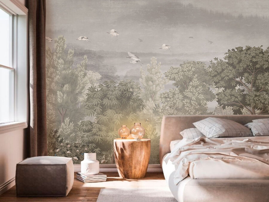 Képzelje el a következőt: belép egy szobába, és bumm! Ott van a magasban repülő madarakat ábrázoló freskó, amelyet buja zöld növényzet vesz körül. Olyan, mintha a saját titkos kertedbe lépnél. Érzi már a nyugalmat? Most képzelje el, ahogy a lágy szellő minden egyes alkalommal, amikor ránéz, végigzizeg a leveleken. Ez több mint dekoráció – ez egy mini menekülés a mindennapok elől.