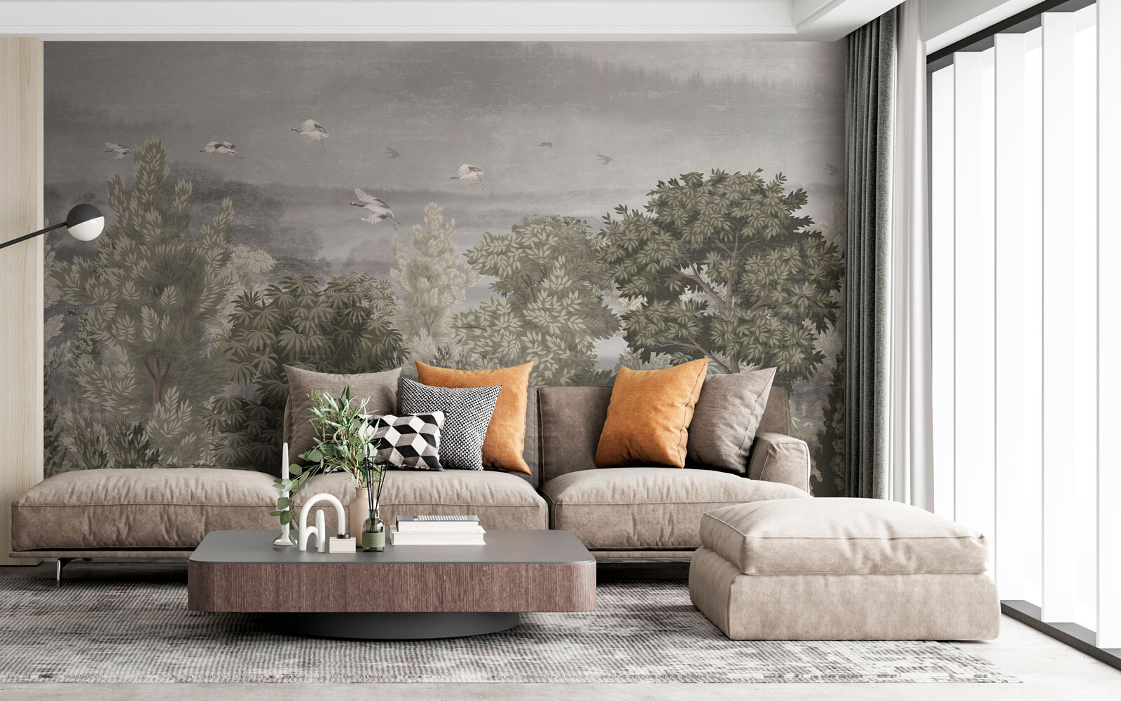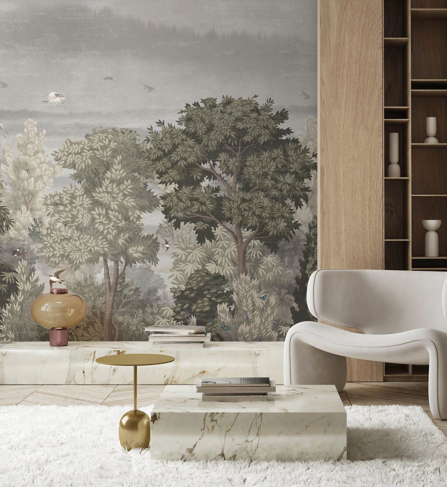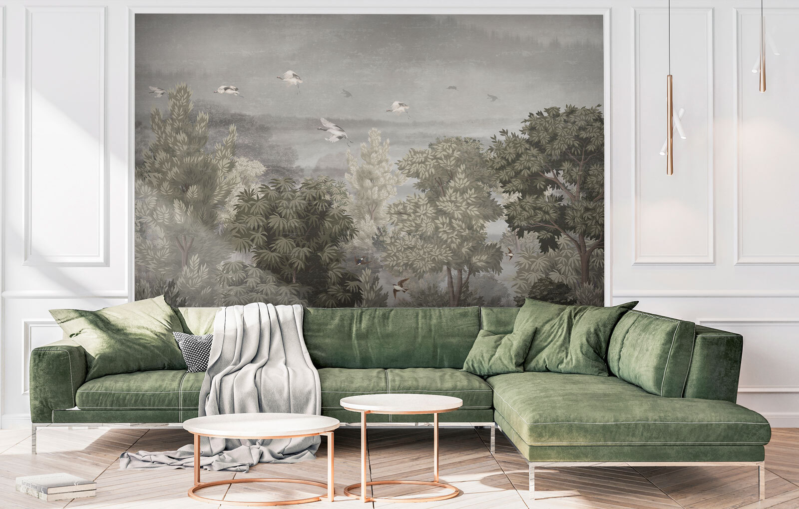 Képzelje el a következőt: belép egy szobába, és bumm! Ott van a magasban repülő madarakat ábrázoló freskó, amelyet buja zöld növényzet vesz körül. Olyan, mintha a saját titkos kertedbe lépnél. Érzi már a nyugalmat? Most képzelje el, ahogy a lágy szellő minden egyes alkalommal, amikor ránéz, végigzizeg a leveleken. Ez több mint dekoráció – ez egy mini menekülés a mindennapok elől.