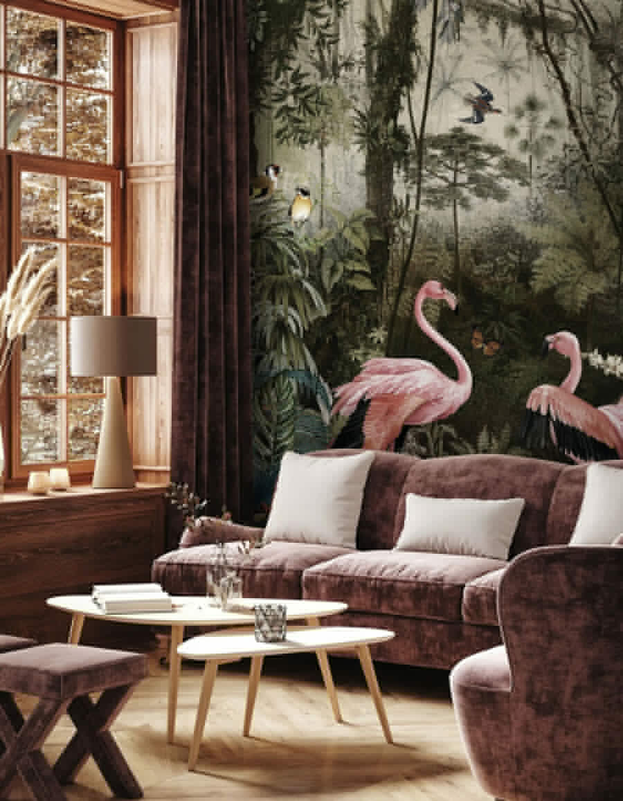 Képzelje el, hogy egy buja dzsungelbe lép, tele flamingók kecses jelenlétével – ez a falfestmény ezt hozza el a helyiségébe. Tökéletes az egyedi hangulat hozzáadásához, olyan, mintha az egzotikus paradicsom egy kis darabkája lenne közvetlenül a falán. A flamingók élénk rózsaszínű színei a dzsungel mélyzöldjével szemben is felbukkannak. Annyira részletes, hogy minden alkalommal, amikor ránézel, úgy fogod érezni, mintha egy expedíción lennél. Ideális mindenkinek, aki egy csipetnyi kalandra vágyik a dekorációjában. Komolyan, ki tudna ellenállni ezeknek a bájos flamingóknak? Olyan érzés, mintha csak úgy kivonulnának és csatlakoznának hozzád egy teára!