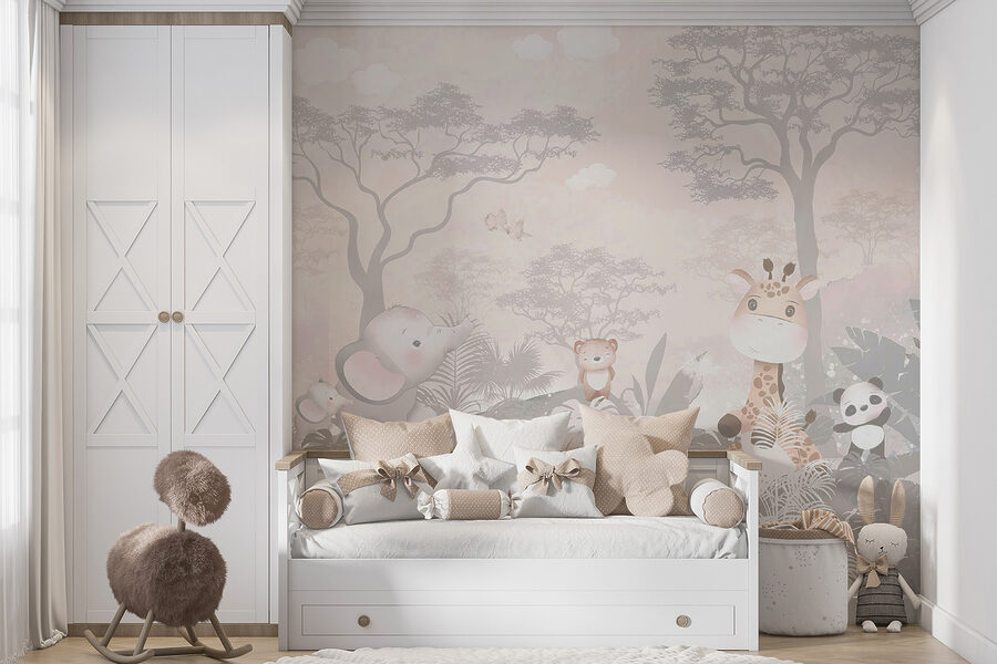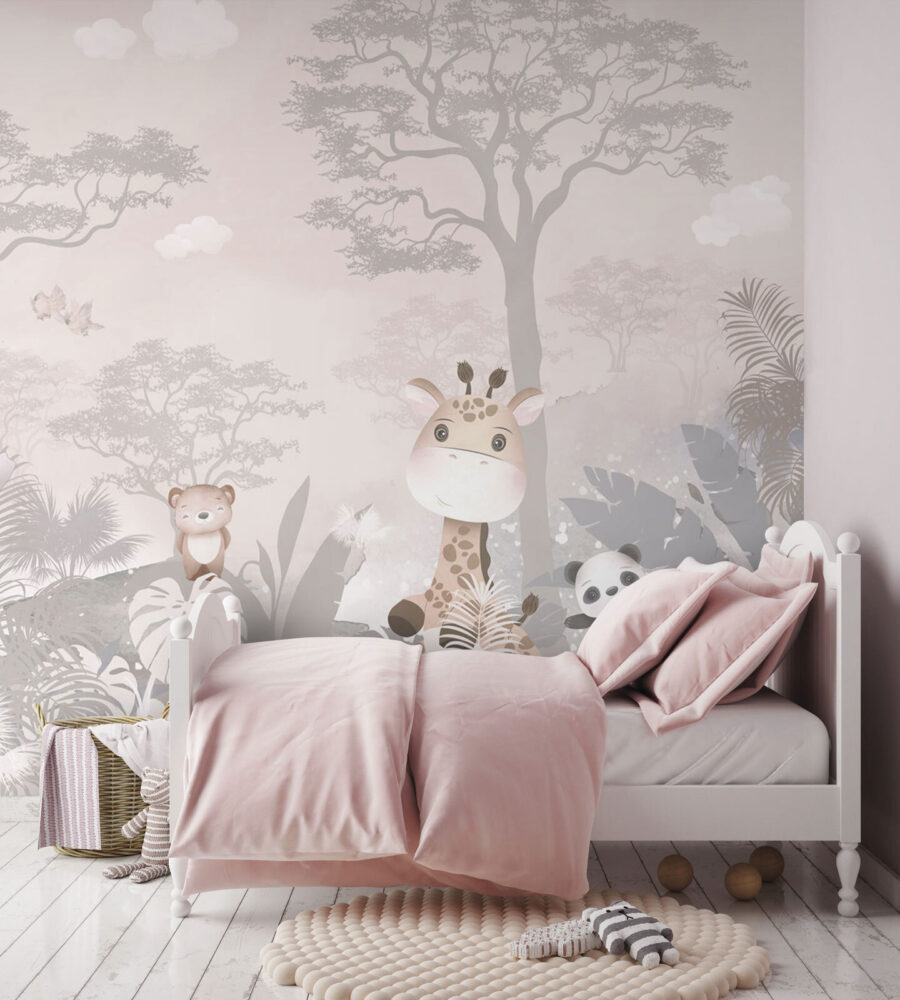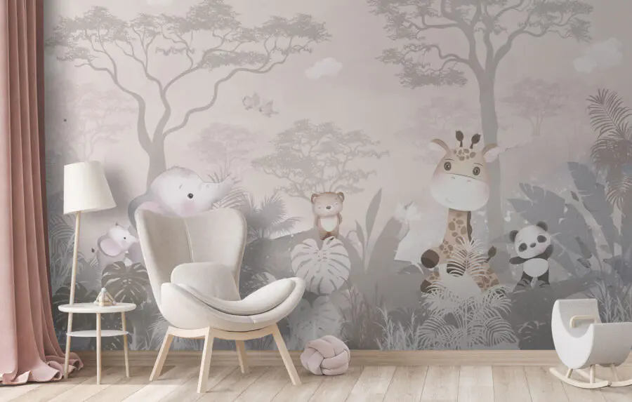 Sziasztok! Láttad már a “Fán ülő zsiráf” falfestményt? Ez az a fajta műalkotás, amely egyenesen egy varázslatos, szeszélyes világba repít. Tökéletes gyerekszobákba – vagy akár minden felnőttben rejlő gyereknek -, hiszen egy elragadóan nyugodt zsiráfot ábrázol, amely barátságos, tágra nyílt szemű erdei pajtások, például egy elefánt, egy panda és egy medve között ül. A lágy pasztellszínek olyan megnyugtató hangulatot árasztanak; szinte olyan, mint egy szelíd altatódal a falakon. Hát nem látod, ahogy a kisgyermeked lefekvés előtt bámulja, és meséket mesél a kalandokról, amelyeket ezek az állatok átélhetnek? Ez nem csak egy falfestmény; ez egy meghívás egy álmodozó, mesékkel teli térbe, ahol a képzelet szabadon szárnyalhat. Ráadásul bármelyik szobát feldobhatja egy adag bájjal és egy kis vidámsággal!