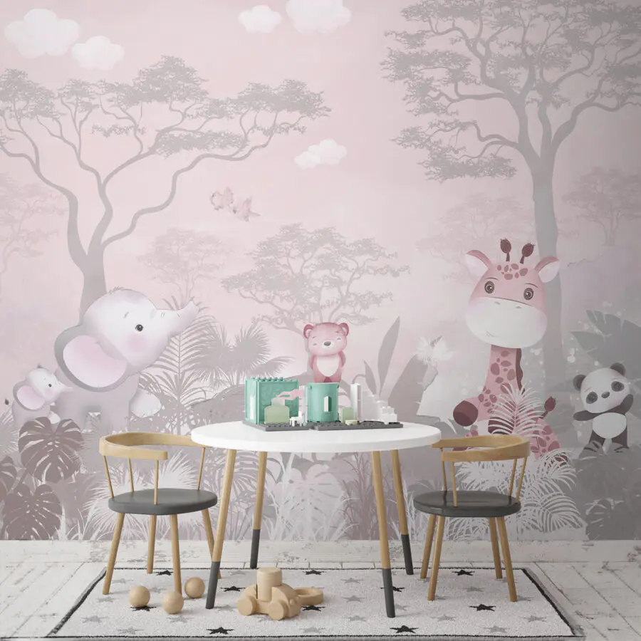 Képzelje el: a kisgyermeke minden reggel egy vidám rózsaszín medvére, egy álomszép zsiráfra és egy pici pandára ébred – milyen jól indul a nap! Akár egy gyerekszobát, akár egy játszószobát alakítasz át, vagy akár egy tinédzser szobáját varázsolod el, ez a falfestmény végtelen mosolyt csal az arcodra. Mintha a falak szelíd kalandokról suttognának, és szárnyalásra sarkallnák a képzeletet.