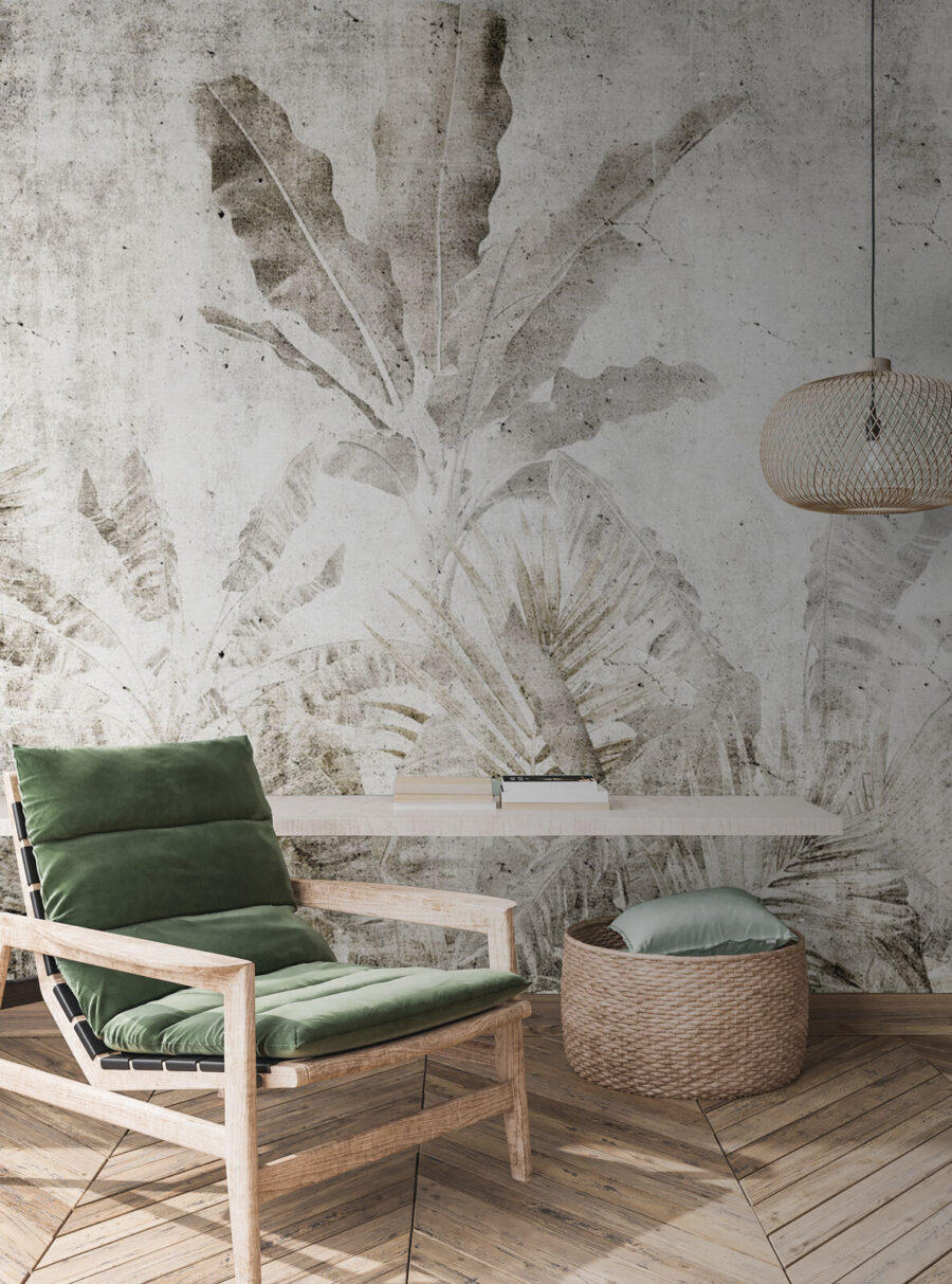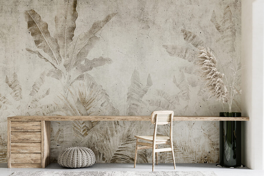 Képzelje el, hogy besétál egy szobába, és azonnal egy álomszép, rusztikus visszavonulásban érzi magát. Ez a “Fakó levelek rusztikus falon” falfestmény pontosan ezt teszi. Megnyugtató, kopottas bája van – mint egy régi kedvenc könyvnek. A finom, kifakult levelek a betonszerű háttér előtt finom textúrát és egy kis rejtélyt adnak. Valahogy sikerül egyszerre modernnek és földszerűnek lennie – mintha egy titkos kert találkozna a hűvös, ipari vibrálással. Tökéletes mindenkinek, aki azt szeretné, hogy a helyisége nyugodtnak és könnyedén stílusosnak tűnjön.