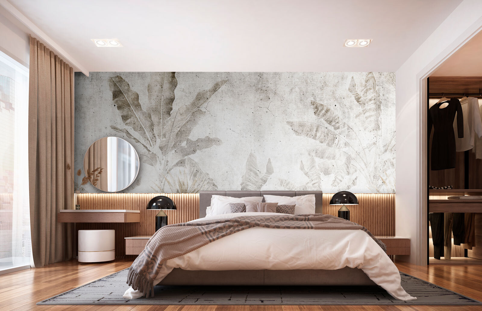 Képzelje el, hogy besétál egy szobába, és azonnal egy álomszép, rusztikus visszavonulásban érzi magát. Ez a “Fakó levelek rusztikus falon” falfestmény pontosan ezt teszi. Megnyugtató, kopottas bája van – mint egy régi kedvenc könyvnek. A finom, kifakult levelek a betonszerű háttér előtt finom textúrát és egy kis rejtélyt adnak. Valahogy sikerül egyszerre modernnek és földszerűnek lennie – mintha egy titkos kert találkozna a hűvös, ipari vibrálással. Tökéletes mindenkinek, aki azt szeretné, hogy a helyisége nyugodtnak és könnyedén stílusosnak tűnjön.