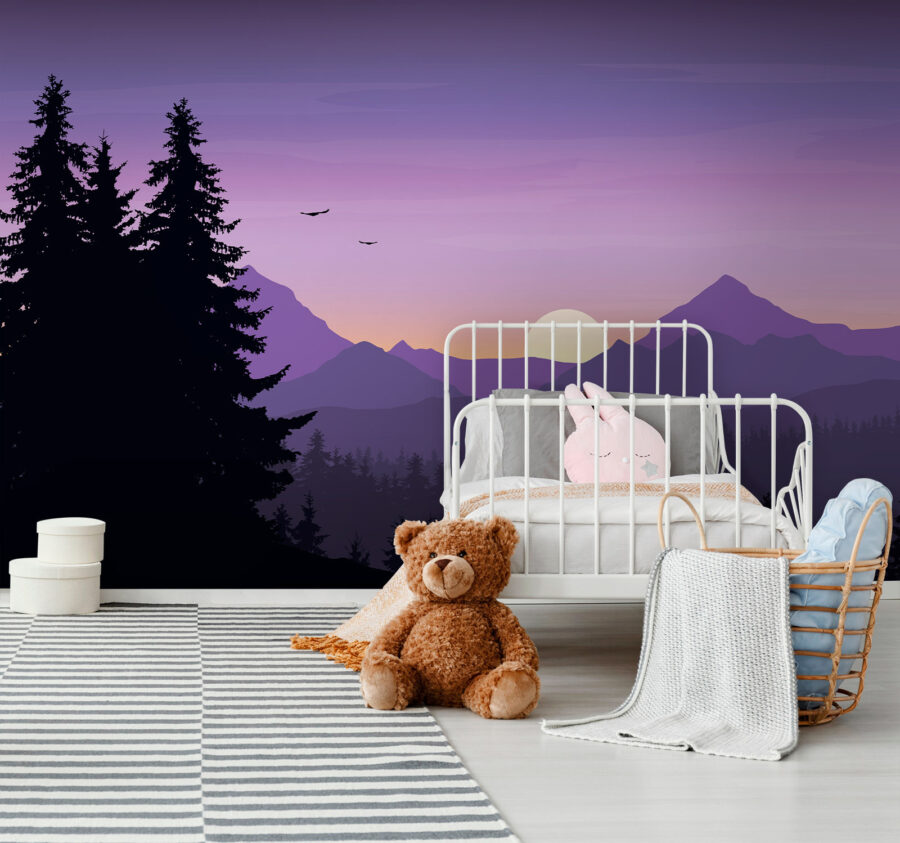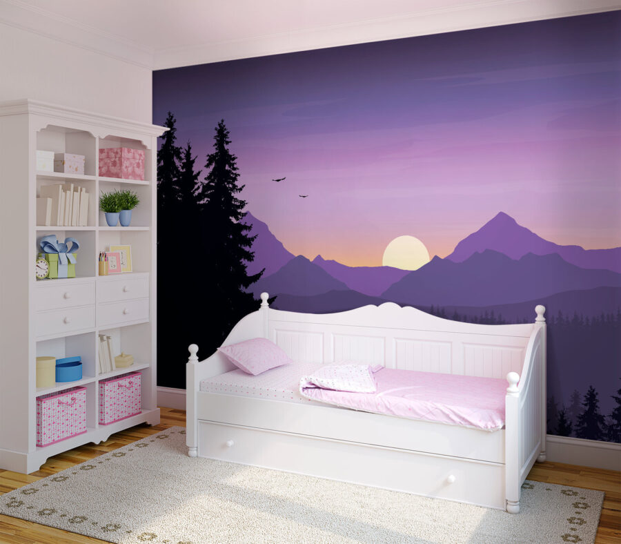 Képzelje el, hogy belép egy hangulatos menedékbe, amelyet a természet nyugodt szépsége vesz körül – anélkül, hogy elhagyná otthonát. Ez a falikép, amelyen lenyűgöző fák és hegyek láthatók, ezt az álmot valósággá teszi a falain. A lenyugvó nap lágy lila árnyalatai táncolnak az égen, varázslatos fényt vetve. Olyan, mintha saját békés menedékhelye lenne, ahol a stressz egyszerűen elpárolog. Képzelje el, ahogy egy jó könyvvel kucorog, vagy történeteket mesél barátainak, miközben élvezi ezt a nyugodt kilátást. Minden pillantás a fenséges hegyekre és a magas fákra egy kis kalandot inspirálhat – vagy legalábbis egy kis álmodozást róla. Tökéletes a természet szerelmeseinek és azoknak, akik egy kis nyugalmat szeretnének vinni a lakásukba. Miért ne hagyná, hogy a falai beszéljenek? Végül is, ki ne szeretne egy kis szabad levegőt a lakásába?