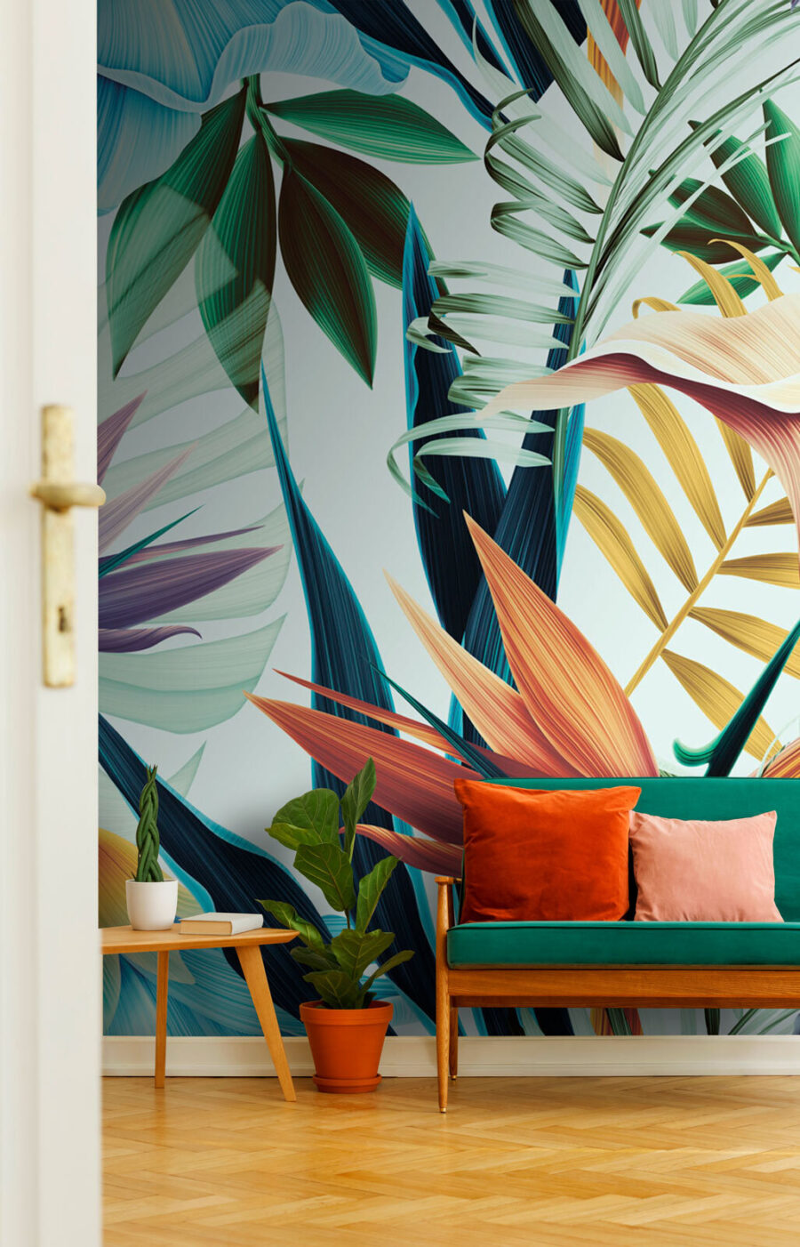 Ha tehát az egyedi dekorációra vágysz, amely egyszerre figyelemfelkeltő és érzelmileg felemelő, akkor ez a falfestmény a te neved. És legyünk őszinték – kinek ne jönne jól egy kis színes vidámság és egy kis dzsungel az otthonában?