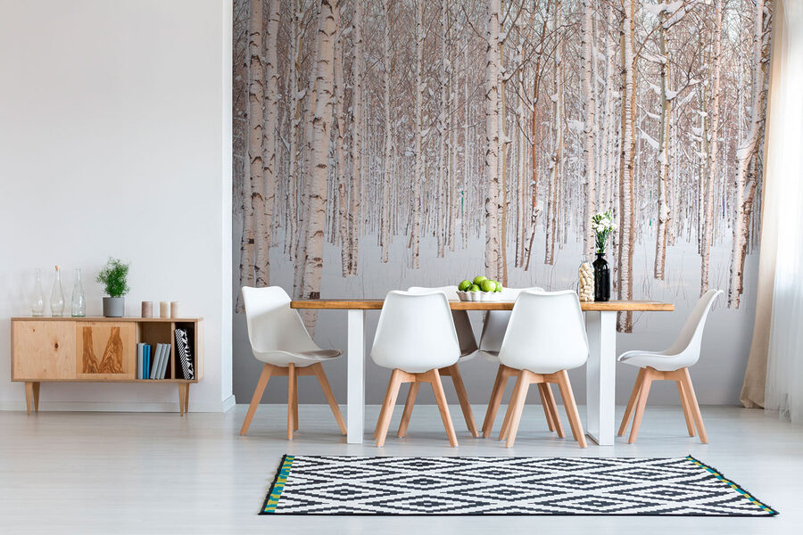 Képzelje el, hogy egy nyugodt, havas nyírfaerdőbe lép, anélkül, hogy elhagyná a nappaliját. Ez a falfestmény nyugalmat és ropogós téli bájt sugároz. Azok a karcsú, fehér fák, amelyek puha hóval vannak beporozva, olyan meghitt hangulatot teremtenek, amely arra hívja Önt, hogy elmeneküljön a mindennapok káoszából. Képzeld el, ahogy egy jó könyvvel és egy meleg itallal összekuporodsz, miközben a békés táj körülvesz téged, és még a legszürkébb napokat is derűssé varázsolja. Olyan, mintha a természet műalkotása lenne otthonodban, amely bármelyik falat nyugodt menedékhellyé varázsolja. Tökéletes az álmodozáshoz, vagy egyszerűen csak a tél szépségének élvezéséhez, akár bent, akár kint!