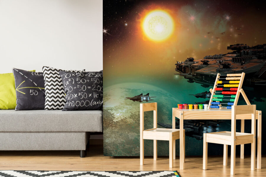 Tökéletes választás minden űrrajongó dolgozószobájába vagy gyerekszobájába – a részletesen kidolgozott csillaghajók, a ragyogó nap és a távoli bolygók olyan érzést keltenek a szobában, mintha egy sci-fi kasszasikerből léptek volna elő. Olyan varázslatos hangulata van, hogy a messzi-messzi galaxisokról fogsz álmodozni. Ráadásul sokkal menőbb, mint egy sima falra bámulni, nem igaz? Szinte hallani a hajtóművek zúgását és érezni az űrkutatás izgalmát. Komolyan, lehet, hogy arra inspirál, hogy űrhajós legyél… vagy legalábbis arra, hogy újra megnézd a kedvenc űrfilmjeidet. Vigyen egy kis univerzumot a mindennapjaiba – hozza haza a csillagokat!