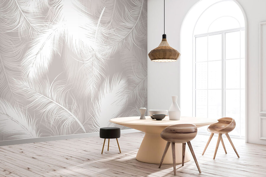 Szeretné eleganciával feldobni a terét? Nézze meg a “Finom fehér tollak” falfestményt. Komolyan, képzelje el, hogy erre ébred – puha, bonyolult tollak, amelyek lágyan lebegnek a falon. Olyan, mintha szobádat egy hangulatos, álmodozó felhőbe burkolnád. Tökéletes hálószobai szentélynek vagy nyugtató nappali hangulatnak. Úgy tűnik, minden egyes toll könnyed, légies táncot jár, ami azonnal derűsebbé teszi a teret. Így akár egy könyvvel lazítasz, akár barátokat fogadsz, ez a falfestmény tökéletes, nyugodt hangulatot teremt. Meleg és szeszélyes, éppen a megfelelő érintés ahhoz, hogy otthonodat békés pihenőhellyé varázsolja.