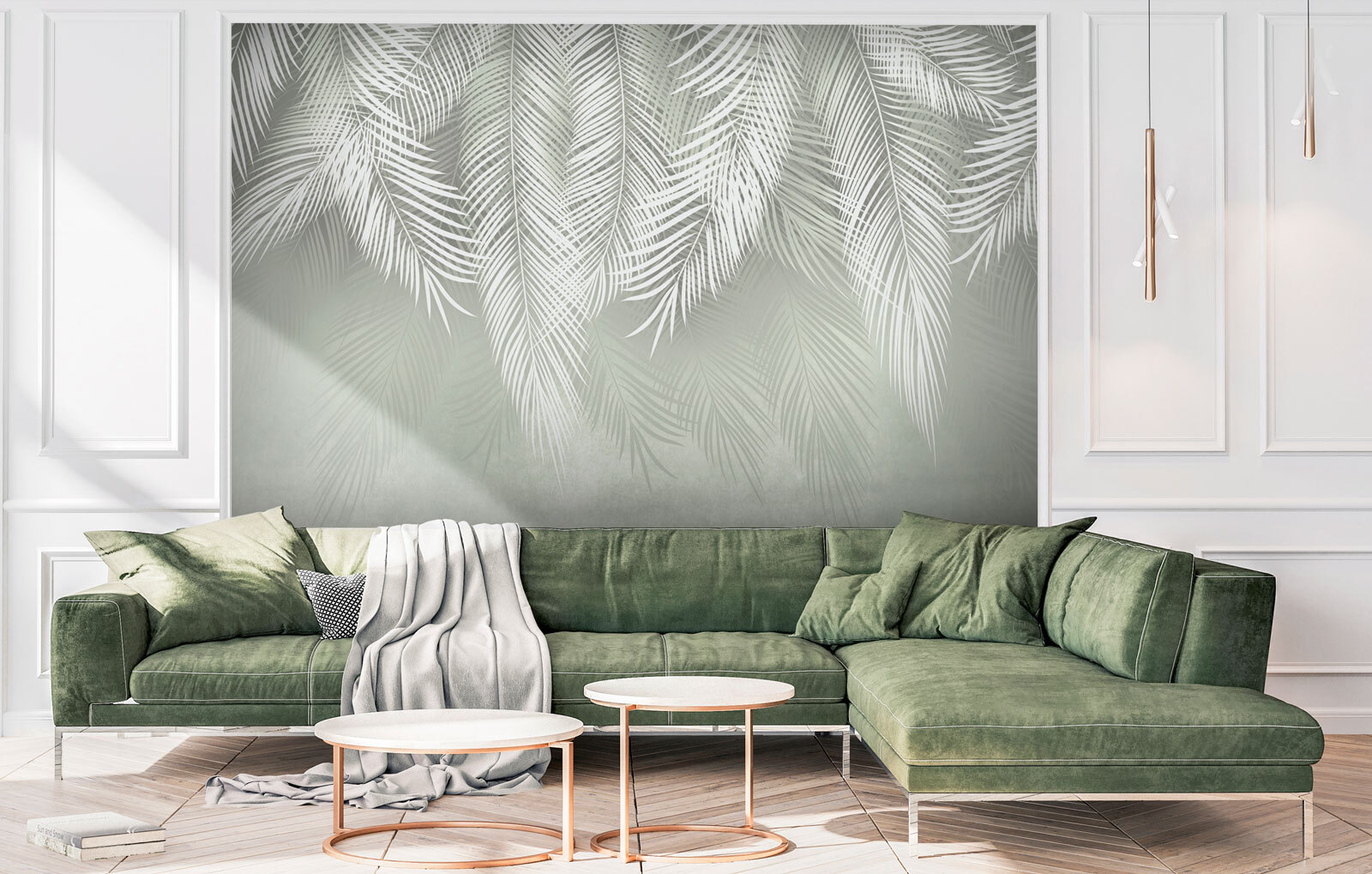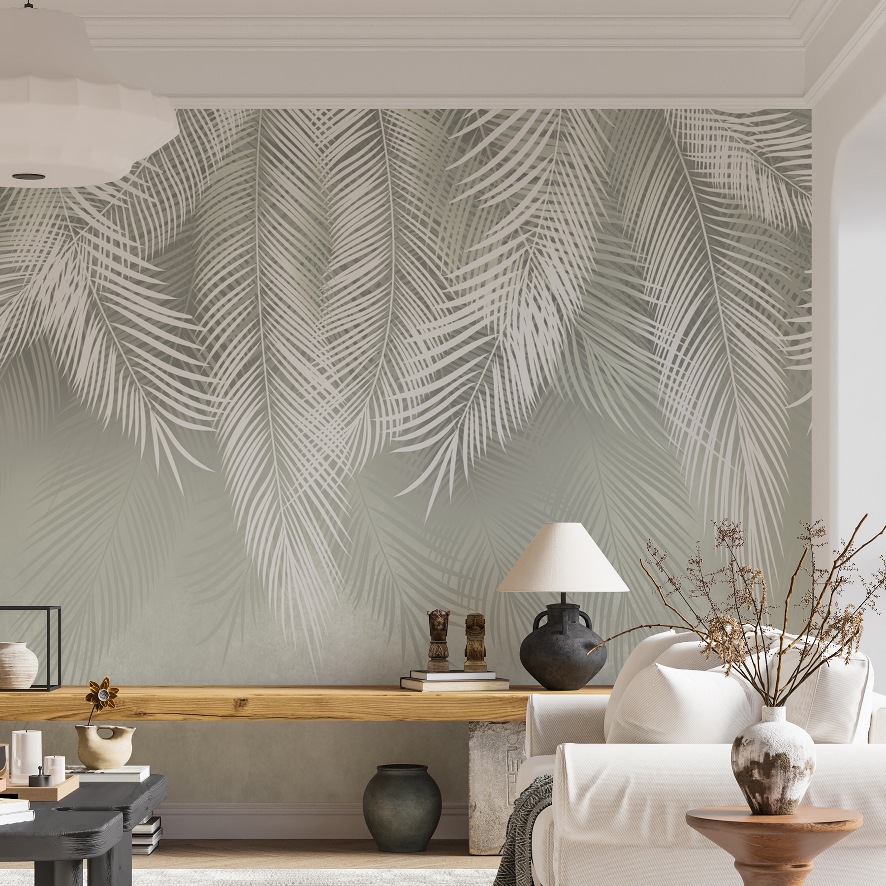 Ez a “Finom fehér pálmalevelek” falfestmény olyan, mint egy kis friss levegő a falakon. Képzelje el a pálmalevelek lágy szellőben való lágy ringatózását, amely nyugodt, szinte trópusi hangulatot hoz a nappalijába vagy hálószobájába. A minta olyan finom, mégis feltűnő, mintha a természet úgy döntött volna, hogy mesterművet fest a faladra. Tökéletes mindazoknak, akik szeretik a természetet, de inkább az otthon kényelmét részesítik előnyben. Ráadásul elég sokoldalú ahhoz, hogy a modern és a klasszikus dekorációs stílusokhoz egyaránt illeszkedjen. Akár egy könyvvel kucorogsz, akár barátaidat szórakoztatod, ez a falfestmény tökéletes hátteret teremt – nyugodt, elegáns és nagyon is hívogató. Teljesen megváltoztatja bármely unalmas helyiséget.