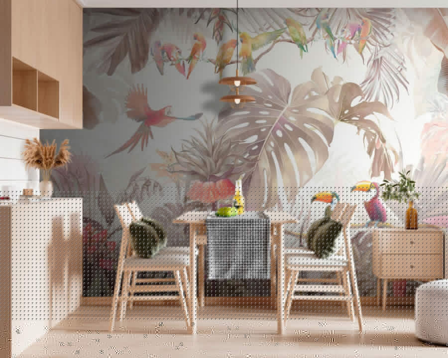 Sziasztok! Képzeld el ezt: egy lenyűgöző falfestmény, amelyen trópusi madarak hűsölnek buja zöldellő növények között. Olyan, mintha egy kis darabka paradicsom lenne a nappalidban. Képzelje el, hogy egy hosszú nap után hazaérve élénk papagájok és tukánok fogadják az egzotikus lombok között. Ez nem csak egy fal – ez egy mini menekülés egy trópusi erdőbe!