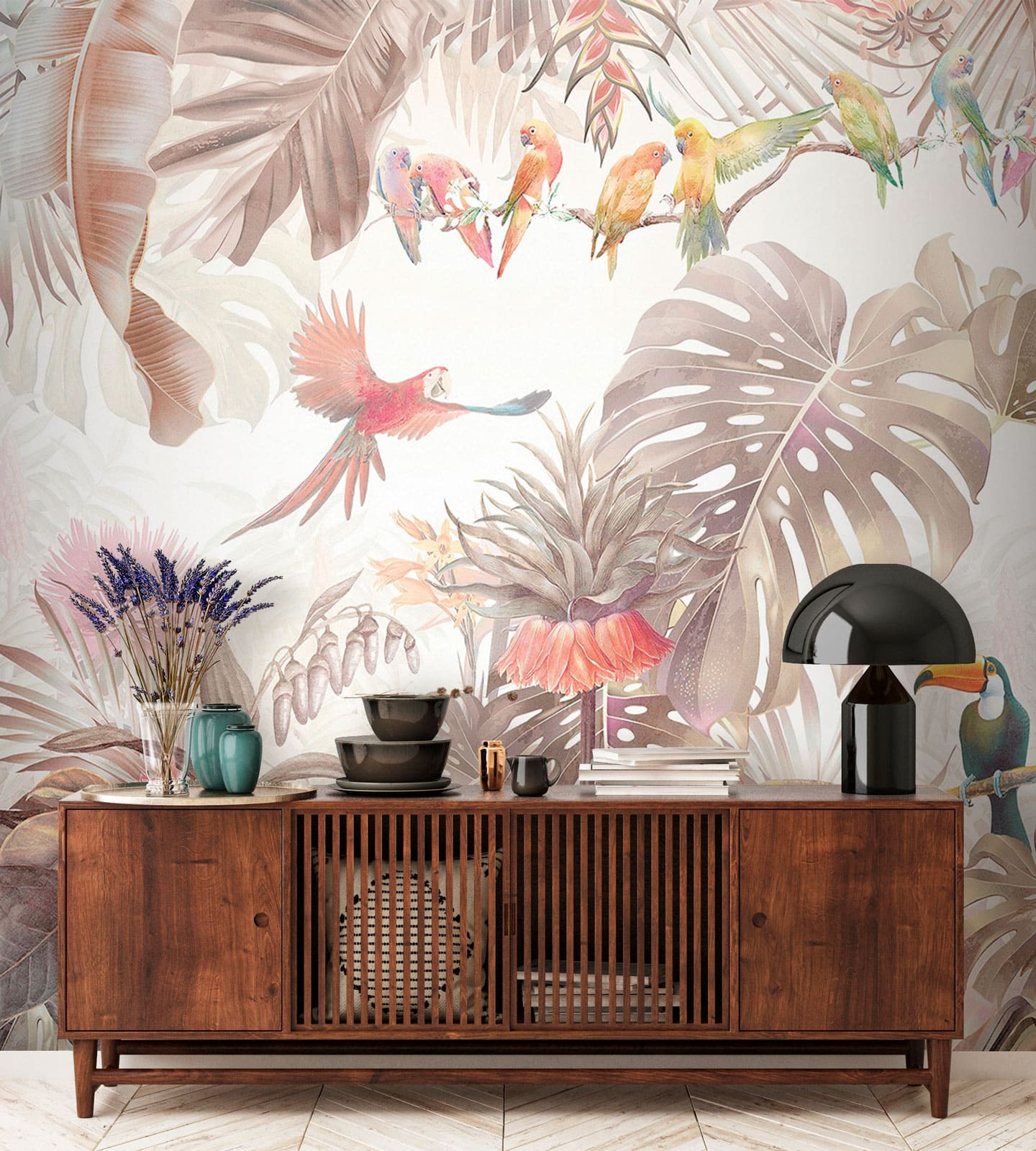 Sziasztok! Képzeld el ezt: egy lenyűgöző falfestmény, amelyen trópusi madarak hűsölnek buja zöldellő növények között. Olyan, mintha egy kis darabka paradicsom lenne a nappalidban. Képzelje el, hogy egy hosszú nap után hazaérve élénk papagájok és tukánok fogadják az egzotikus lombok között. Ez nem csak egy fal – ez egy mini menekülés egy trópusi erdőbe!