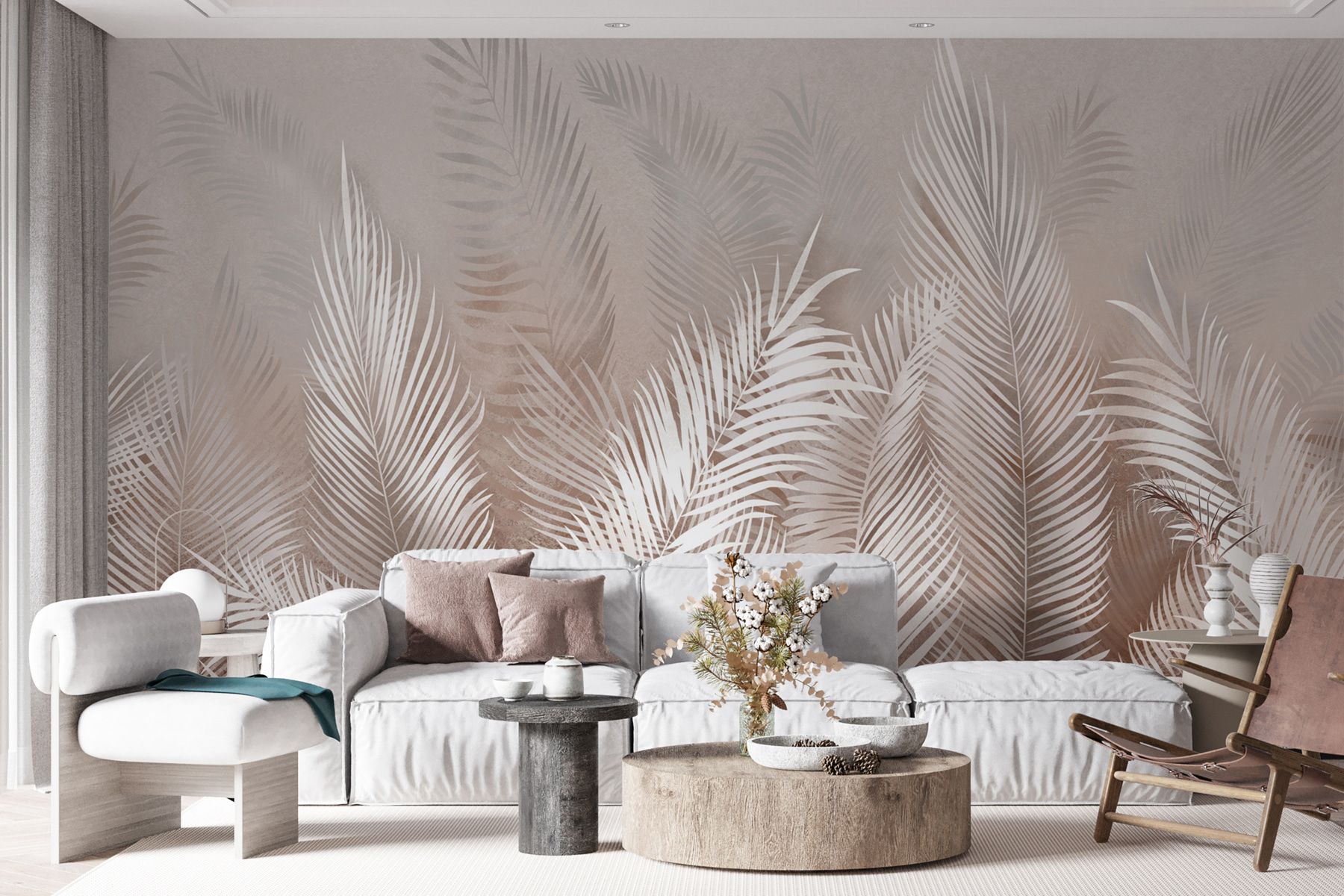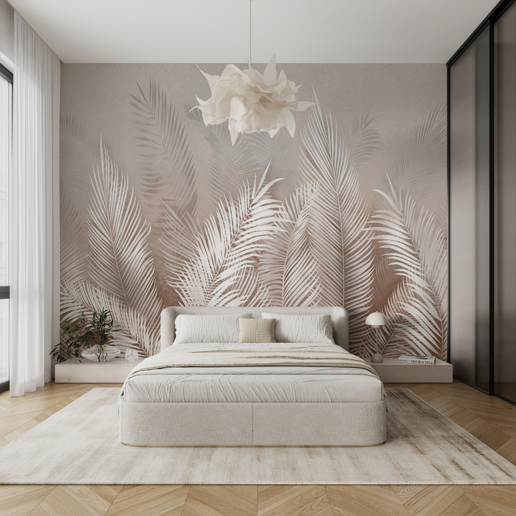 Alakítsa át terét egy nyugodt oázissá ezzel a magával ragadó falfestménnyel, amely elegáns pálmaleveleket ábrázol egy lágy, álomszerű háttér előtt. Képzelje el, ahogy belép a szobába, és érzi a lágy szellőt – oké, talán nem szó szerint, de a hangulat mindenképpen ott van. A visszafogott színek könnyedén illeszkednek bármilyen dekorációs stílushoz, így tökéletes egy hálószoba nyugtató elvonulásának vagy egy nappali sikkes érintésének. A barátok azt fogják hinni, hogy van érzéke a tervezéshez, vagy talán még egy titkos tervező barátja is van. És ki ne vágyna egy kis trópusi hangulatra a lakásban? A levelek lágyan ringatóznak, és a béke érzését idézik. Akár a reggeli kávét kortyolgatod, akár egy hosszú nap után lazítasz, ez a falfestmény csendesen suttogja: “Pihenj, a paradicsomban vagy”. Olyan, mintha a természet egy kis darabkája lenne a faladon.