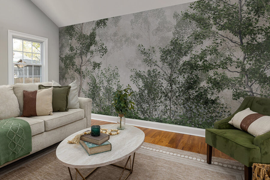 Képzeld el, hogy belépsz egy szobába, ahol lelassul az idő, és azonnal átölel az erdő szelíd suttogása. Ez a “Ködös erdő zöld lombokkal” falfestmény pontosan ezt teszi a helyiséggel – egy nyugodt erdei menedékké változtatja azt. A köd és a zsenge zöld levelek keveréke friss, nyugtató hangulatot kölcsönöz, amitől megesküszöl, hogy fenyő és föld illatát érzed.