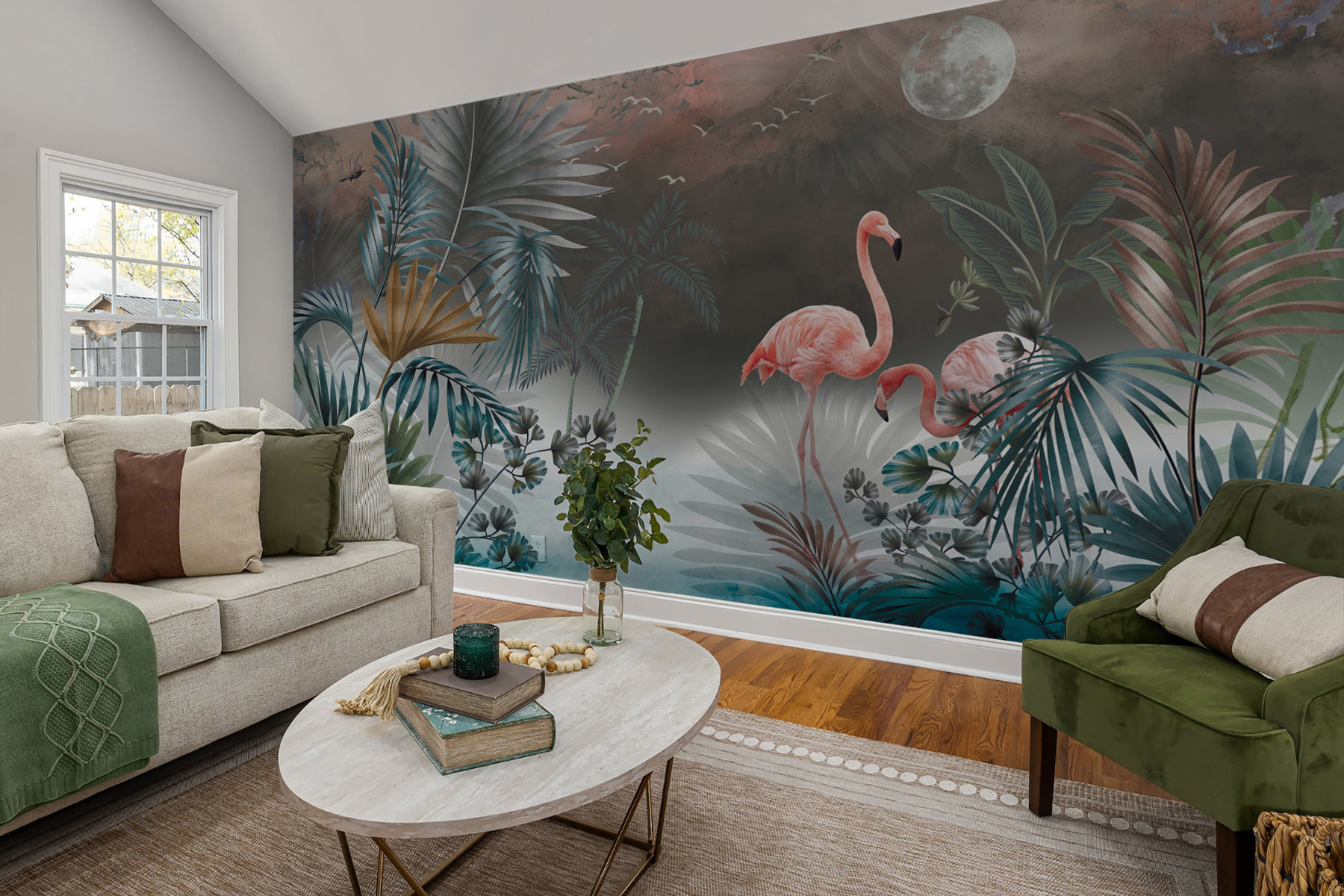 A lenyűgöző falfestmény, amely flamingókat ábrázol egy nyugodt paradicsom közepette, bármilyen teret trópusi meneküléssé varázsolhat. Képzelje el, hogy egy álomszerű üdülőhelyre léphet közvetlenül a nappalijából vagy a munkahelyéről. A lágy árnyalatok és a buja zöld növényzet olyan érzést kelt, mintha lágy szellő lengedezne, miközben a vidám flamingók ugrándoznak, és vidámságot árasztanak. Ez a falfestmény nem csupán tapéta; ez egy beszélgetésindító, a természet egy kis szelete, amely talán éppen arra a felejthetetlen tengerparti nyaralásra emlékeztet. Tökéletes a megnyugtató légkör megteremtéséhez, legyen szó akár egy hangulatos zugról vagy egy vibráló étkezőhelyről. Szóval, hajrá – engedje, hogy a trópusok eljöjjenek Önhöz!