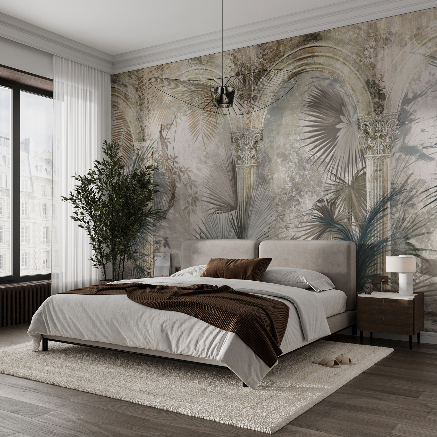 Képzelje el, hogy hazatér egy kis darabka paradicsomba, amely ősi bájjal rendelkezik. Ennek a falfestménynek van ez az egész régi világ arche- és dzsungelhangulata, ami egyszerűen elbűvölő. Olyan, mint egy titkos kert a falon! Tökéletes mindenkinek, aki szereti ezt az álomszerű, szinte mitikus megjelenést. Gondolj a hangulatos reggelekre egy kávé mellett, és érezd úgy, mintha visszaléptél volna az időben. Ráadásul a finom textúrák és a hűvös tónusú zöldek és szürkék? Igen, ezek szuper nyugtatóak. Egyszerre elegáns és vadul szabad szellemű – ideális a saját nyugodt tered kialakításához.
