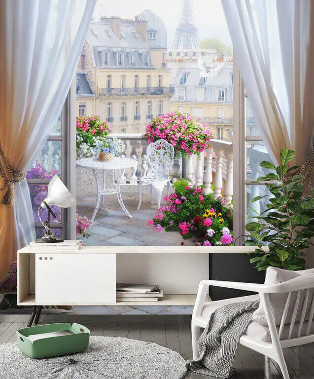 Képzelje el, hogy belép a nappalijába, és egy nyugodt párizsi erkélyre kerül – ó, a varázslat! Ez a “Nyugodt párizsi erkély virágokkal” falfestmény könnyedén átalakítja terét egy elegáns, európai meneküléssé. Képzelje el ezt: finom kovácsoltvas székek, cserepekből áradó élénk virágok, és a lágy napfényen keresztül az Eiffel-torony. Olyan, mint egy azonnali nyaralás, csak nem kell csomagolnia.