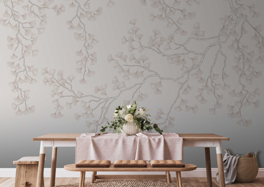 Beszéljünk a “Ginkgo ágak áramló mintázata” falfestményről. Képzelje el, hogy belép egy olyan szobába, ahol ezek a finom vonalak és a ginkgo ágak lágy színárnyalatai könnyedén áramlanak a falon. Olyan, mintha a nyugodt természet egy darabját hoznád be az otthonodba. Tökéletes minden olyan helyiségbe, ahol egy csipetnyi nyugodt eleganciára vágyik. Az ágak szinte ringatózni látszanak a lágy szellőben – még az is lehet, hogy álmodozáson kapja magát, miközben rájuk néz. Akár a nappaliban, akár a hálószobában, vagy akár egy hangulatos olvasósarokban, ez a falfestmény nyugodt meneküléssé varázsolja az egyszerű falat.