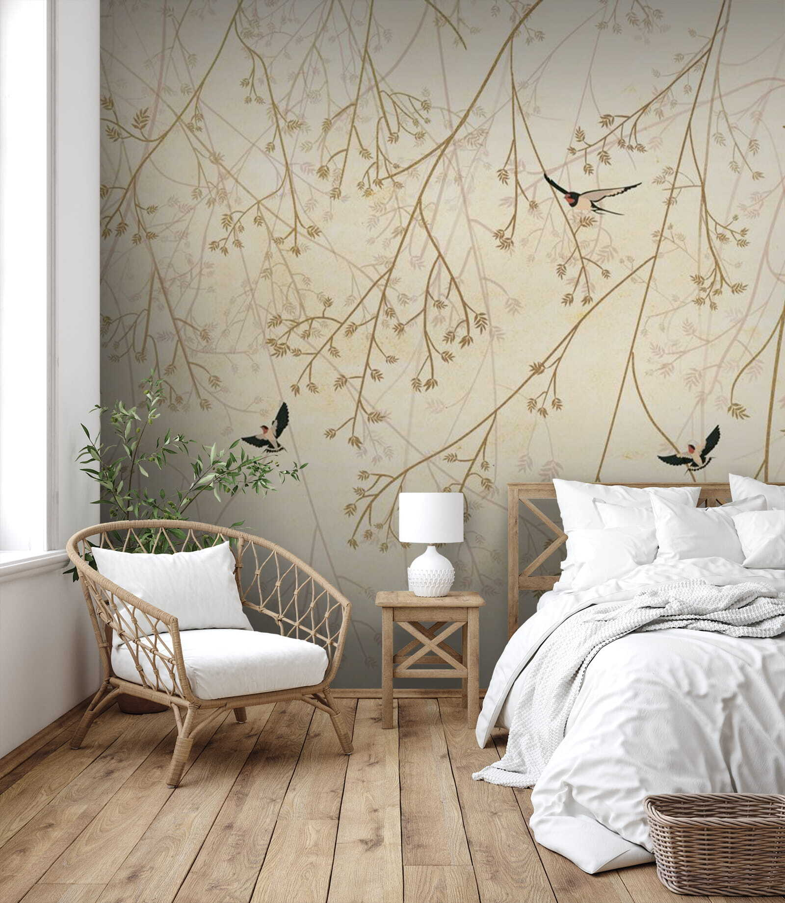 Képzelj el egy lusta vasárnap reggelt, kávét szürcsölgetve, és érezd a lágy szellőt – ez a falfestmény a finom ágakon átrepülő madarakról pontosan ezt a hangulatot hozza a térbe. Olyan, mintha a természet nyugalmának egy darabkája lenne a falon. A lágy, földes tónusok könnyedén illeszkednek bármilyen dekorációhoz, így szobája hangulatos és hívogató lesz.
